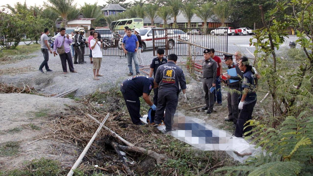 ที่เกิดเหตุ พบพนักงานและชาวบ้านมุงดูเหตุการณ์ จำนวนมาก บริเวณท้องร่อง พบร่างผู้เสียชีวิตทราบชื่อภายหลัง คือ MR.HE YONUJIE อายุ 34 ปี หัวหน้าไกด์ชาวจีน นอนเสียชีวิต สวมเสื้อคอกลมสีแหลือง กางเกงยีนส์ ขายาว สภาพศพเลือดอาบใบหน้า มีรอยช้ำขนาดใหญ่ที่หน้าอก ในสภาพน่าสยดสยอง ส่วนผู้บาดเจ็บอีก 2 ราย วิ่งหนีหกล้มได้รับบาดเจ็บเล็กน้อย เจ้าหน้าที่กูภัยฯ จึงนำส่งโรงพยาบาลใกล้เคียง บริเวณที่เกิดเหตุ ยังพบว่าแผงที่กั้นยังล้มระเนระนาด ที่ตัวของผู้เสียชีวิตยังพบกระเป๋าสะพายภายในมีทรัพย์สิน เอกสารสำคัญหลายรายการ เจ้าหน้าที่ตำรวจจึงเก็บไว้เป็นหลักฐาน