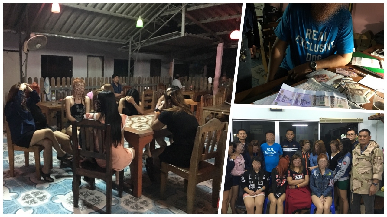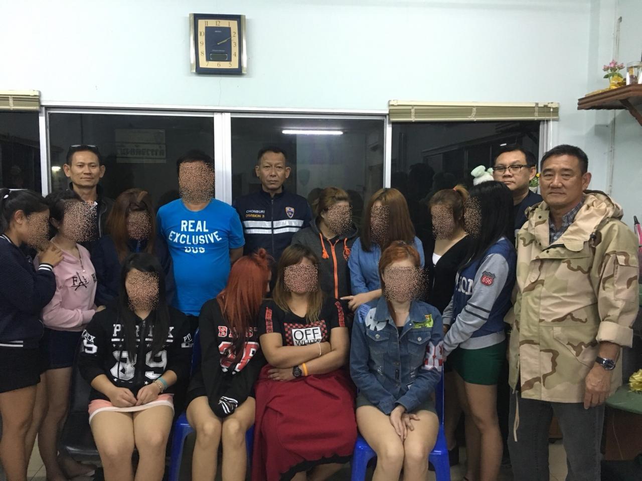 ตม.จว.ชลบุรี ล่อซื้อจับ 11 สาวลาวลักลอบค้าประเวณี ภายในร้าน "น้องอ้อ" ตั้งข้อหาหลบหนีเข้าเมือง มั่วสุม และเตร็ดเตร่ค้าประเวณี ไม่พบข้อมูล เป็นเหยื่อจากการค้ามนุษย์