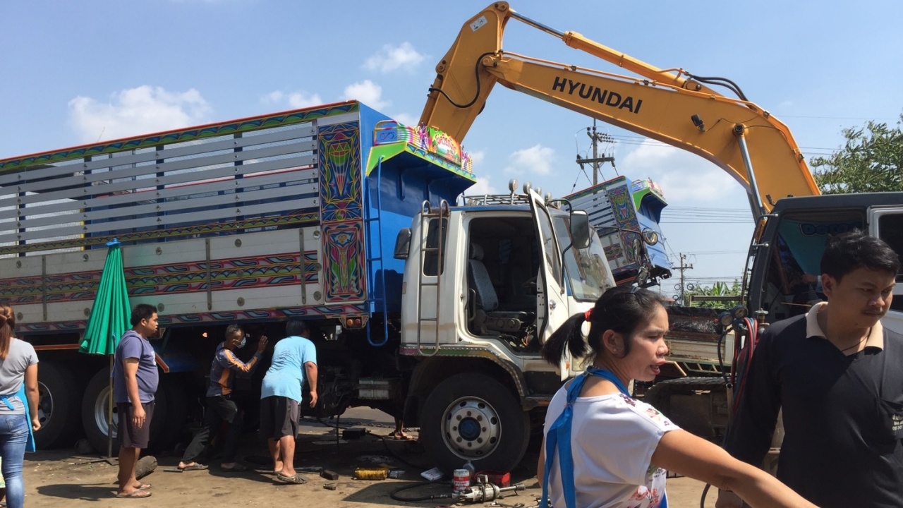 เจ้าของอู่รถประมาทใช้เหล็กแป็บค้ำกระบะดั้ม10 ล้อ มุดซ่อมระบบไฮดรอลิค เคราะห์ร้าย เหล็กค้ำรับน้ำหนักไม่ไหว ยุบกระบะร่วงทับร่าง แขน ขาขาด อาการสาหัส เมียรู้ข่าวถึงกับช็อกต้องหามส่งโรงพยาบาล ตามกัน