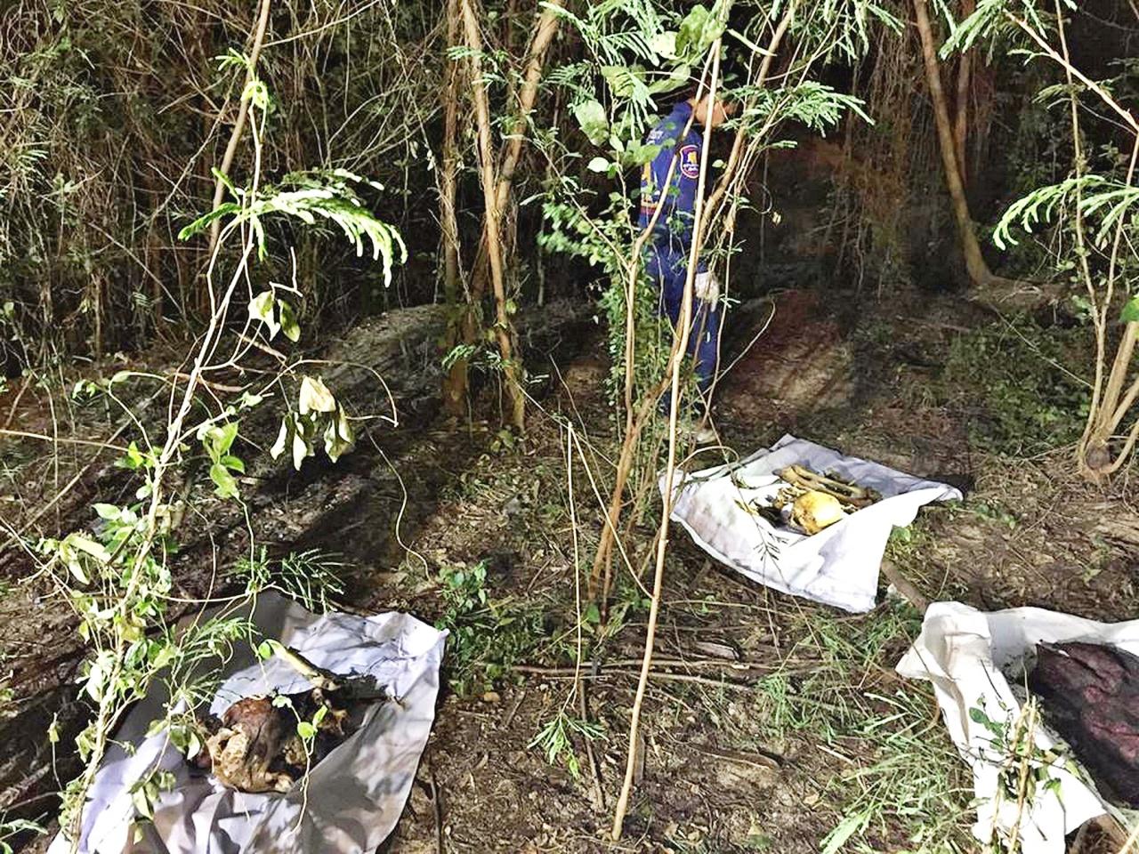 สอบถาม นายบัวเรียน สมเพชร อายุ 40 ปี อาชีพรับจ้างทั่วไป เล่าว่า มีคนงานต่างด้าวที่อยู่บริเวณนั้นมาหาของในป่ากระถิน แล้วเจอชิ้นส่วน จึงได้ตามตนมาดู ตนจึงได้มาดูและพบว่าเป็นชิ้นส่วนของมนุษย์ จึงแจ้งเจ้าหน้าที่ตำรวจให้มาตรวจสอบ