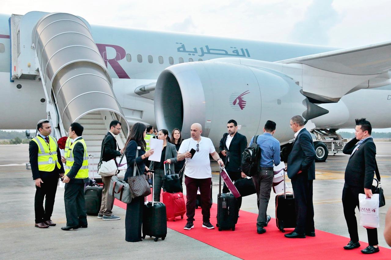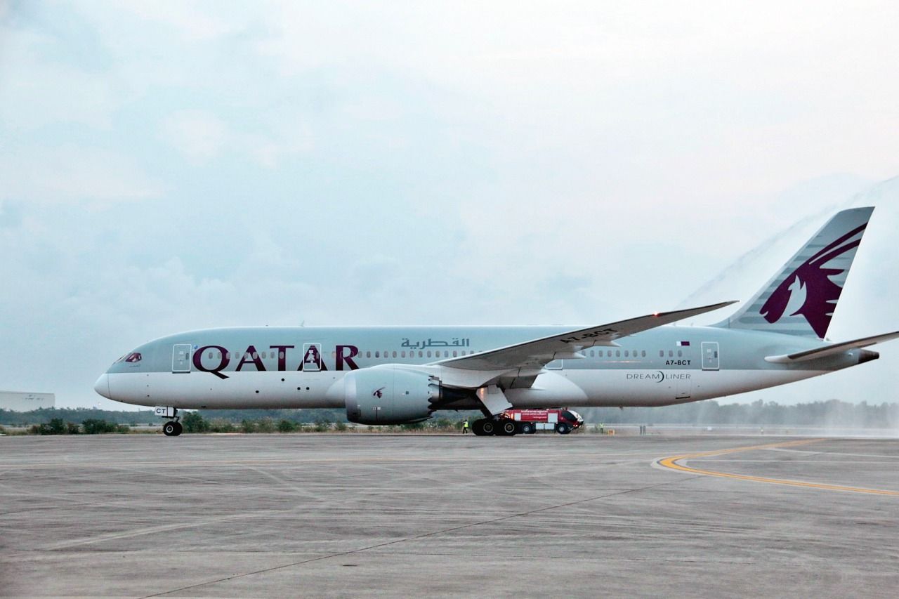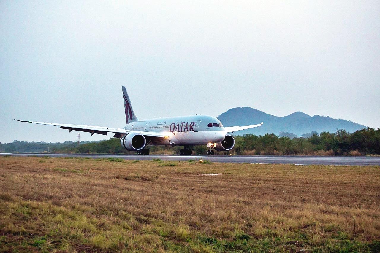 เครื่องบินโดยสารแบบโบอิ้ง 787-8 ของกาตาร์ แอร์เวย์ส เที่ยวบิน QR828 ลงจอดที่สนามบินนานาชาติอู่ตะเภา (ระยอง-พัทยา) เวลา 06:30 น. และมีการฉีดน้ำอุโมงค์เพื่อต้อนรับการลงจอดของเที่ยวบินปฐมฤกษ์ โดย นายสุนทร ชัยยินดีภูมิ เอกอัครราชทูตไทยประจำประเทศกาตาร์ มร. มาร์วาน โคลีเล็ท ผู้ช่วยกรรมการผู้จัดการสายการบินกาตาร์ แอร์เวย์ส ภาคพื้นเอเชีย แปซิฟิก เดินทางมาพร้อมกับเที่ยวบินพิเศษจากสนามบินนานาชาติฮาหมัด ศูนย์กลางการบินระดับห้าดาว โดยมี พล.ร.ต. ลือชัย ศรีเอี่ยมกุล ผู้อำนวยการท่าอากาศยานนานาชาติอู่ตะเภา ระยอง-พัทยา มร. จาสเซ็ม อัล ทานี เอกอัครราชทูตกาตาร์ประจำประเทศไทย นายชายชาญ เอี่ยมเจริญ รักษาราชการแทนผู้ว่าราชการจังหวัดชลบุรี นาย ศตวรรษ อนันตกูล รองผู้ว่าราชการจังหวัดระยอง และพล.ต.ต.อนันต์ เจริญชาศรี นายกเมืองพัทยาและคณะผู้แทนสำคัญให้การต้อนรับ