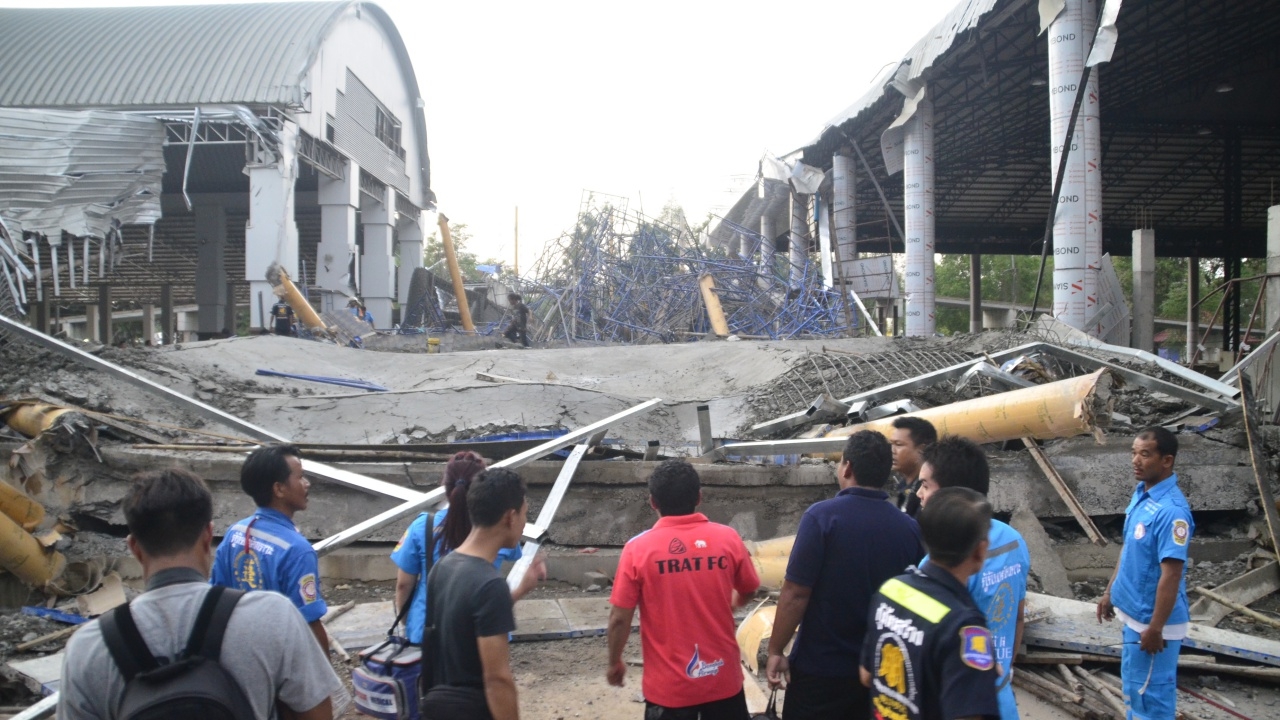 อาคารแสดงสินค้าโอทอป ขององค์การบริหารส่วนจังหวัดตราด กำลังก่อสร้าง เกิดถล่มทับคนงาน เบื้องต้นบาดเจ็บ 15 ราย ...
