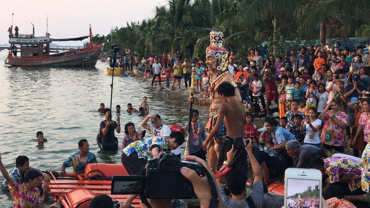 ชาวบ้าน-นักท่องเที่ยว ร่วมพิธีบวงสรวงสักการะองค์พญายม ก่อนนำไปลอยสู่ทะเลบางพระ เชื่อเป็นการปลดปล่อยความทุกข์ โรคภัยไข้เจ็บ ...
