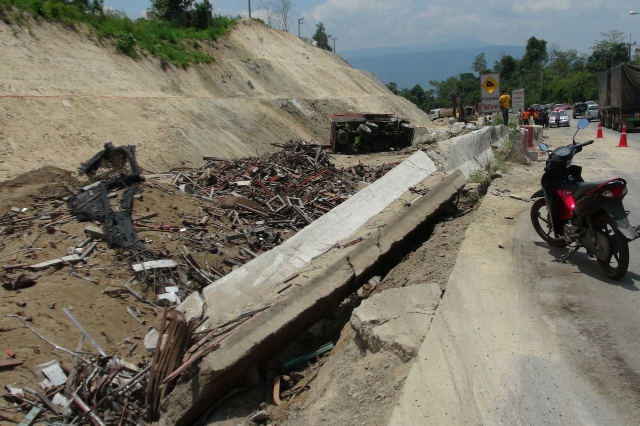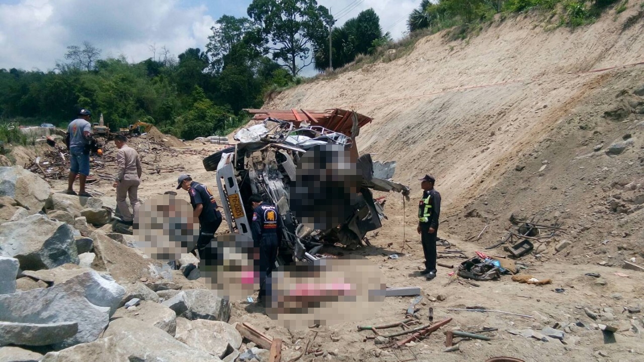 หลังรับแจ้งได้เดินทางไปตรวจสอบที่เกิดเหตุ พร้อมด้วยนายนภดล งามเหลือ นายอำเภอนาดี เจ้าหน้าที่ทหารดูแลความสงบพื้นที่นาดี และเจ้าหน้าที่หน่วยกู้ภัยมูลนิธิสัจจพุทธธรรมกบินทร์บุรี พบว่าบริเวณทางโค้งขึ้นลงเขา ถนนลาดชัน มีแท่งแบริเออร์ถูกชนได้รับความเสียหายและมีเศษเหล็กกระจัดกระจายเกลื่อนทั่วบริเวณ ห่างไปประมาณ 50 เมตร พบรถบรรทุก 10 ล้อ ยี่ห้อฮีโน่ ทะเบียน 70-0403 น่าน พลิกคว่ำอยู่ข้างไหล่เขา สภาพพังแหลกเหลวทั้งคัน