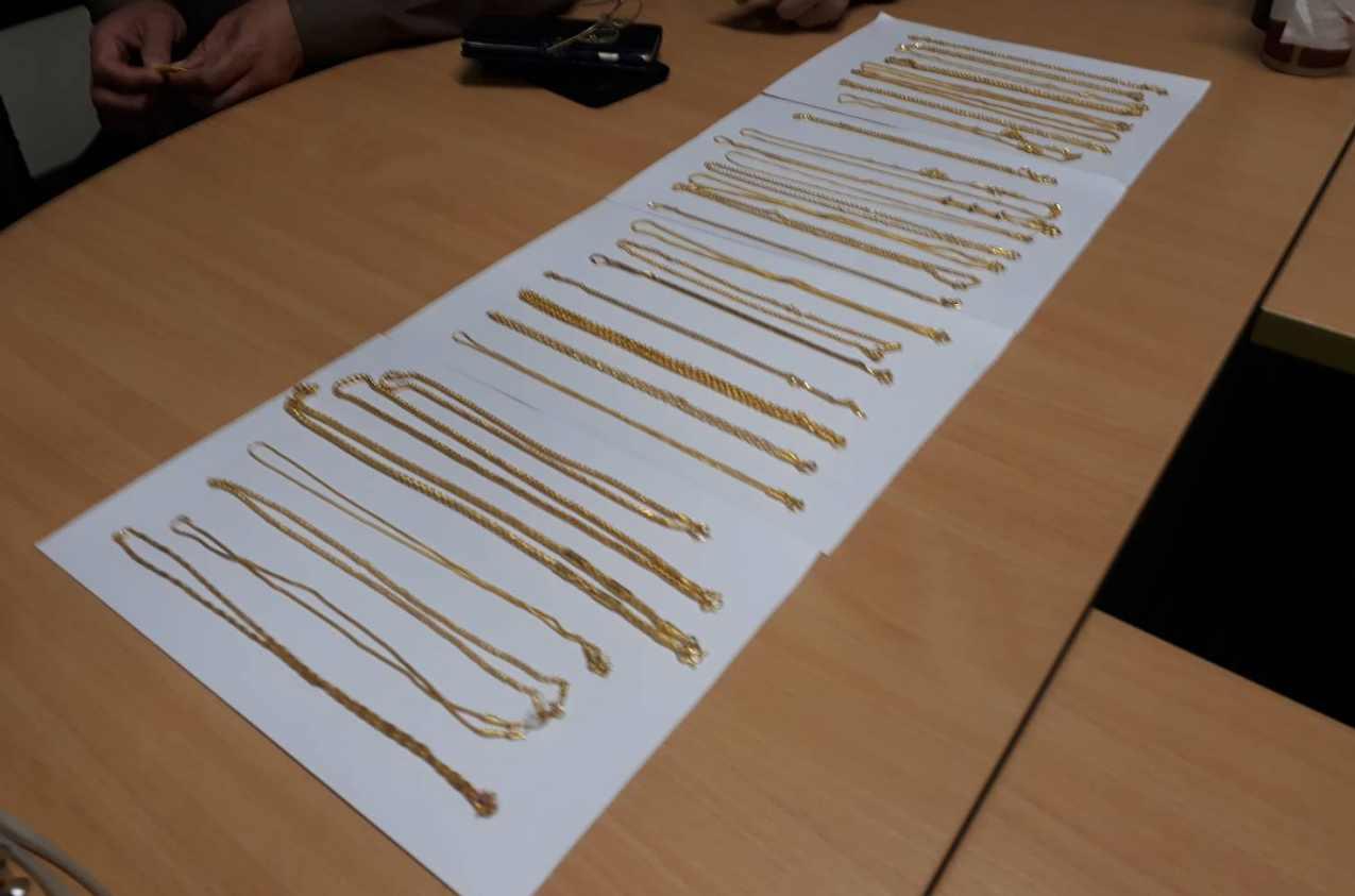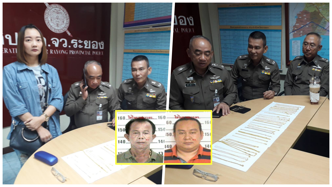 จากนั้นในตอนบ่าย พล.ต.ท.จิตติ รอดบางยาง ผบช.ภ.2 เดินทางมาที่กองบังคับการตำรวจภูธรจังหวัดระยอง นำทองรูปพรรณจำนวน 30 เส้น น้ำหนักรวม 16 บาท 50 สตางค์ ซึ่งเป็นของกลางที่คนร้ายปล้นไป พร้อมเชิญนางสาวดวงกมล เงาใส อายุ 32 ปี และนางสาวรจนา จินะสาม อายุ 39 ปี ทั้งสองเป็นผู้จัดการร้านทองเยาวราชกรุงเทพ สาขาบิ๊กซีระยอง ที่เกิดเหตุ มาตรวจสอบทองรูปพรรณ โดยใช้กล้องส่องดูที่สัญลักษณ์ของทองแล้วยืนยันว่าเป็นทองของร้านที่ถูกปล้นไป เจ้าหน้าที่จึงเก็บไว้เป็นหลักฐาน