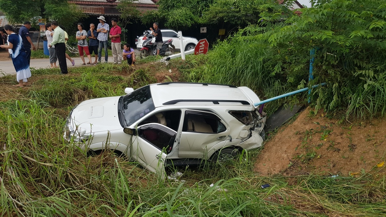 เมื่อวันที่ 27 ส.ค. ร.ต.อ.อนุพงษ์ พวงพี รองสว.สอบสวน สภ.แกลง จ.ระยอง ตรวจที่เกิดเหตุบริเวณถนนบายพาสตัดใหม่สี่แยกเข้าอำเภอแกลง ม.10 ต.ทางเกวียน พบรถเก๋งโตโยต้าฟอร์จูนเนอร์ สีขาว ทะเบียน กจ 784 กรุงเทพมหานคร ตกอยูในคูข้างถนน มีคนได้รับบาดเจ็บสาหัสจำนวน 5 คนกู้ภัยแกลง นำตัวส่งโรงพยาบาลแกลงรักษาตัว ส่วนภาพรถด้านท้ายถูกชนอย่างจังได้รับความเสียหาย ห่างออกไปประมาณ 200 เมตรพบรถบรรทุก 6 ล้อยี่ห้อฮีโน่ สีขาว ทะเบียน 80-09833 ระยอง บรรทุกขี้เลื่อยเต็มคันจอดอยู่ด้านหน้ารถมุมขาวมีรอยเฉียวชนได้รับความเสียหาย กระหน้าแตก มีนายสุทิศ สีโทน อายุ 34 ปี อยู่บ้านเลขที่ 23 ม.11 ต.สีโทน อ.ศรีแก้ว จ.ศรีษะเกตุ เป็นผู้ขับขี่ยืนรอให้การต่อเจ้าหน้าที่ตำรวจ