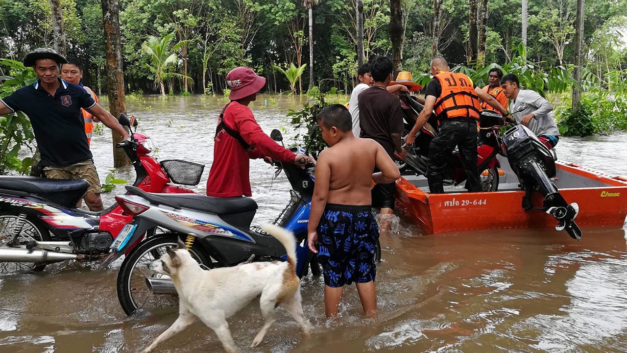 เจ้าหน้าที่นำเรือท้องแบนเข้าช่วยเหลือผู้ประสบภัยบ้านเกาะตาม้อย ต.โพธิ์งาม อ.ประจันตคาม จ.ปราจีนบุรี หลังเกิดฝนตกหนัก น้ำป่าจากอุทยานแห่ง ชาติเขาใหญ่ไหลบ่าเข้าท่วมกลางดึก ต้องขนของหนีน้ำโกลาหล น้ำท่วมคลุมพื้นที่ 3 ตำบล เดือดร้อนหลายร้อยครัวเรือน.