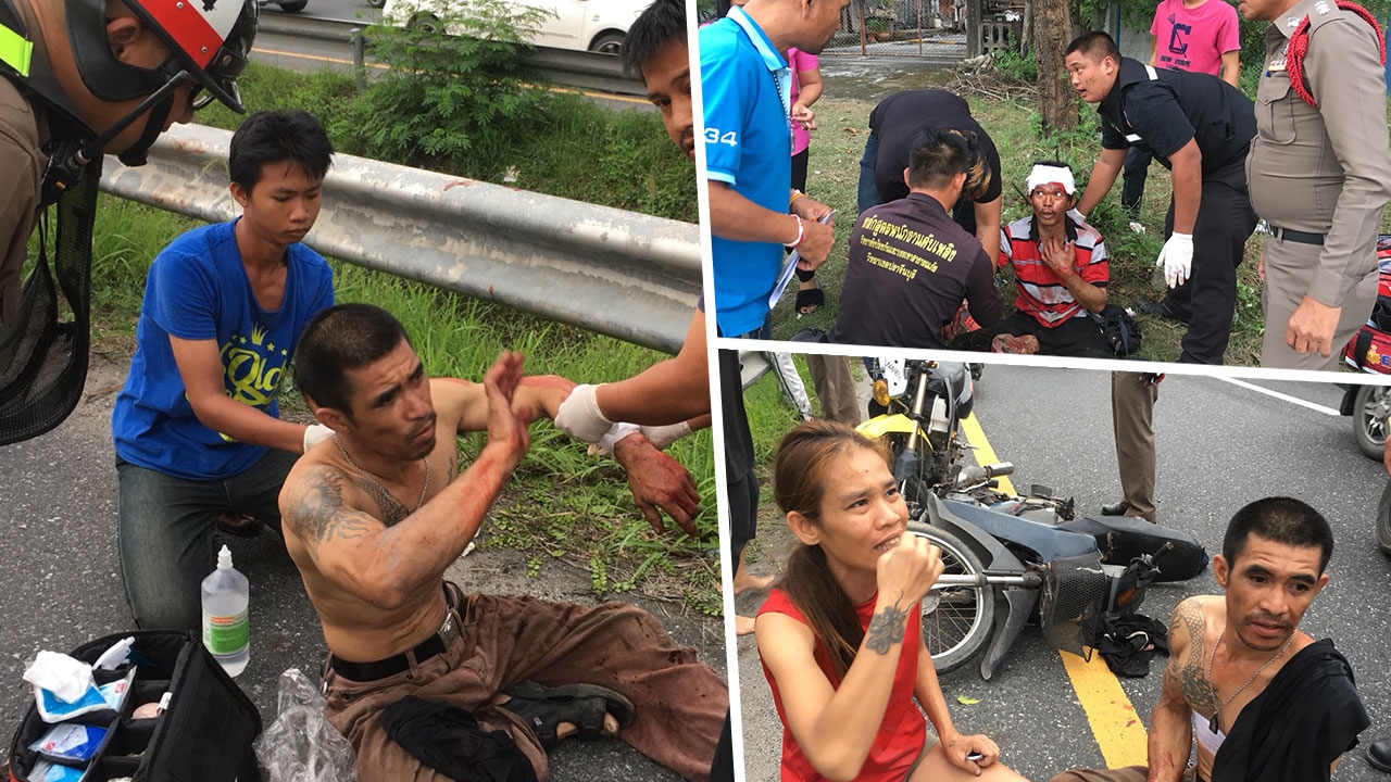 ผัวใหม่ขี่รถ จยย.เจอเมียซ้อนท้าย จยย.ผัวเก่า เร่งเครื่องชนล้ม ก่อนคว้ามีดไล่ฟัน แต่ดันโดนผัวเก่าแย่งมีดได้ ถูกฟันกลับ สุดท้ายเจ็บสาหัสทั้งคู่ ด้าน ตร.รอทั้งคู่อาการดีขึ้น เรียกสอบใครผิดถูกดำเนินคดี