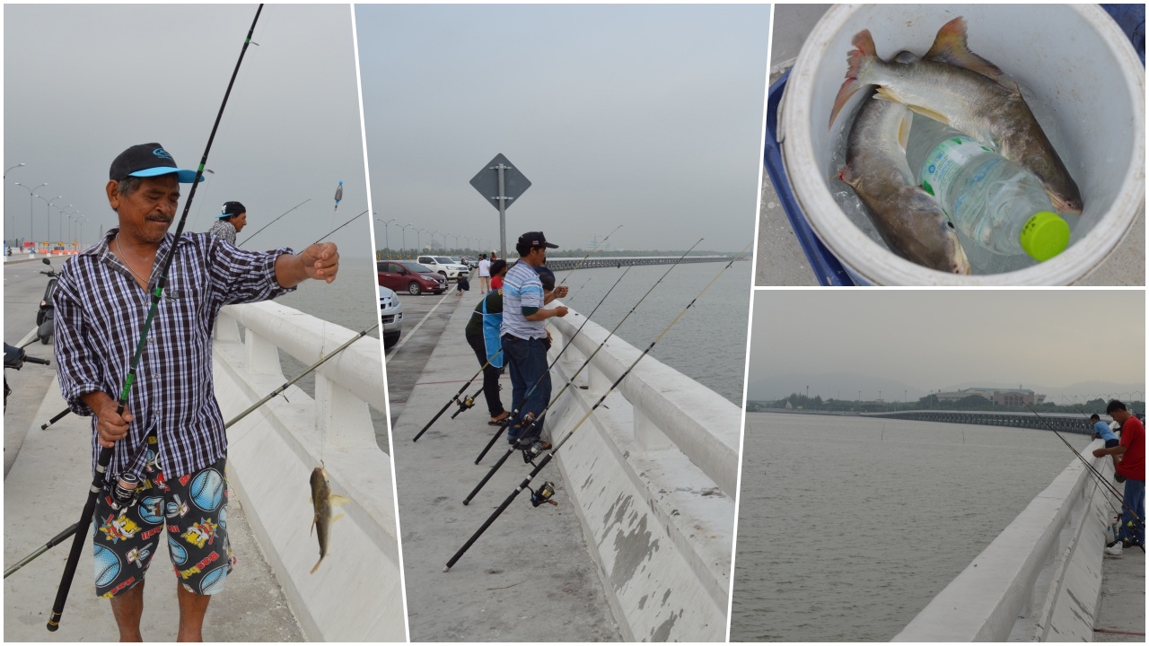 นายสมบัติ เกตุตากแดด อายุ 48 ปี กล่าวว่า ช่วงนี้น้ำขึ้นสูง ประกอบกับสะพานเลียบชายทะเลแห่งนี้ยื่นออกจากชายฝั่งอยู่เหนือน้ำทะเล ทำให้นักตกปลาทะเลแห่นำคันเบ็ดมาตกปลากันอย่างคับคั่ง ซึ่งช่วงนี้มีทั้งปลากด ปลาตะกรับ ปลาแมงปอ ปลาหูช้าง ปลากุเรา และปลาครุฑ ส่วนใหญ่ตกได้ปลากดทะเล ซึ่งมีขนาดกลาง น้ำหนัก 7 ตัว 1 กิโลกรัม ทำให้ขณะนี้มีนักตกปลามาตกปลาบริเวณสะพานเลียบชายทะเล ตอนที่ 4 แลนด์มาร์คแห่งนี้เพิ่มมากขึ้น หลังมีการบอกต่อกันไป อีกทั้งบรรยากาศดี และปลามีให้ตกตลอดเวลาที่น้ำขึ้น บางคนนำไปวางขายเป็นรายได้เสริม หรือนำกลับไปทำอาหารกินที่บ้าน ประหยัดค่าใช้จ่ายในครอบครัวอีกด้วย.