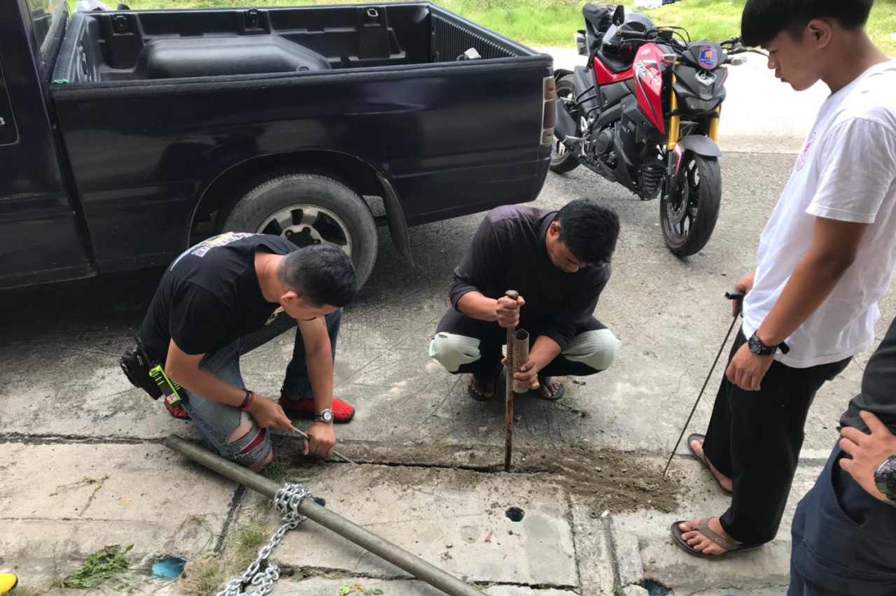 วันที่ 18 ก.ย. ผู้สื่อข่าวรายงานว่า หน่วยกู้ภัยศีลธรรมสมาคมบ้านบึง อำเภอบ้านบึง จังหวัดชลบุรี พร้อมกับเจ้าหน้าที่เทศบาลบ้านบึง ได้เข้าช่วยกันนำอุปกรณ์ทั้งเหล็ก แชลง ท่อแป๊บ โซ่ มาทำการเปิดแผ่นปูนฝาท่อระบายน้ำออก เพื่อจะช่วยเหลือชีวิตลูกสุนัขที่ได้เดินพลัดตกลงไป หลังจากได้รับแจ้งจากนางสาวสาวิตรี อุตฉิมพาลี อายุ 22 ปี พนักงานบริษัท SIAM LOP TECHNOLOGY CO,LTD ตั้งอยู่ที่ริมถนนสายบ้านบึง-พานทอง หมู่ที่ 1 ตำบลบ้านบึง อำเภอบ้านบึง จังหวัดชลบุรี ให้ช่วยนำเจ้าลูกสุนัขออกมา