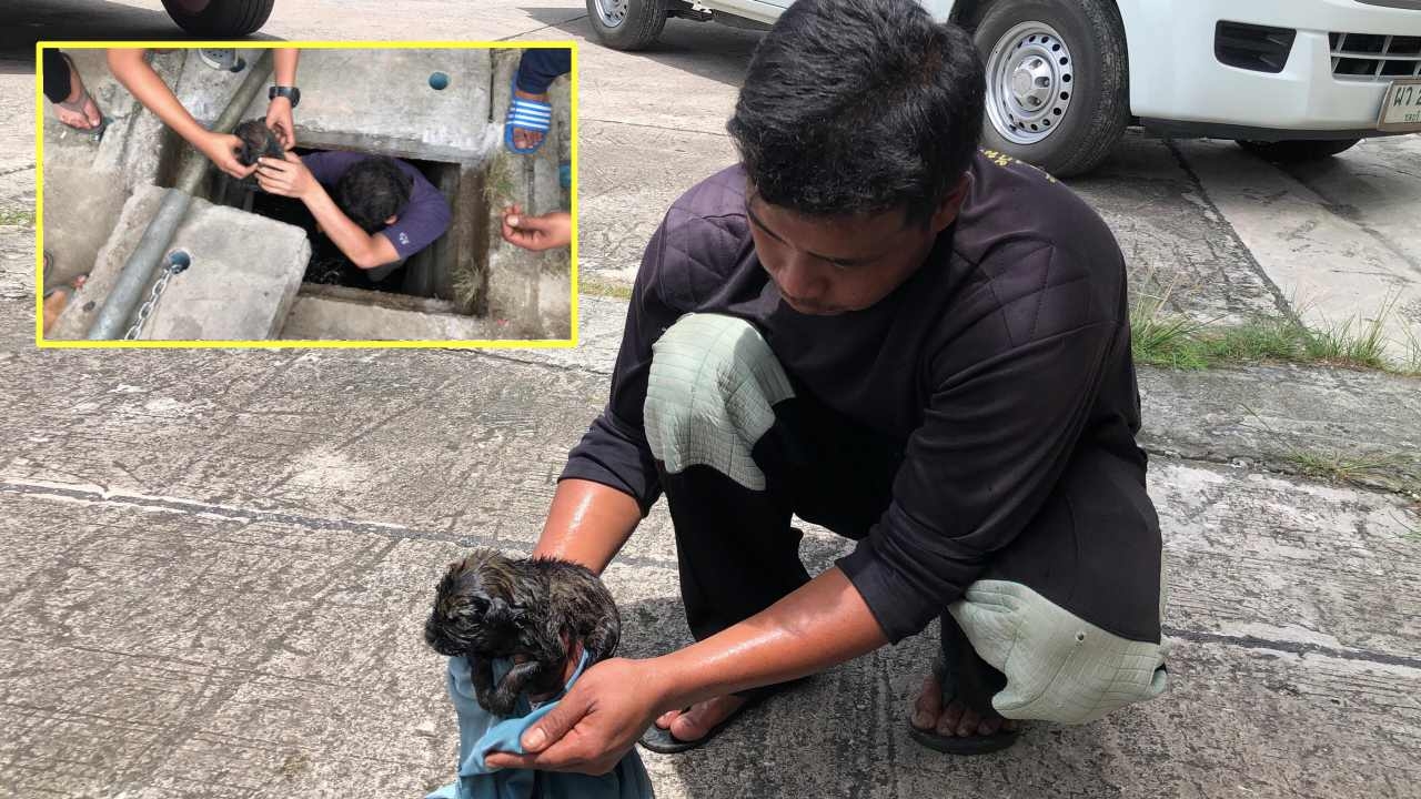 สาวโรงงานที่บ้านบึง รับเลี้ยงหมาจรจัดออกลูกมา 8 ตัว มีตัวหนึ่งเล่นซนตกไปในท่อระบายน้ำ คราวนี้ต้องถึงมือหน่วยกู้ภัยมาช่วย ใช้เวลากว่า 1 ชั่วโมง นำตัวเจ้าหมาน้อยขึ้นมาได้อย่างปลอดภัย