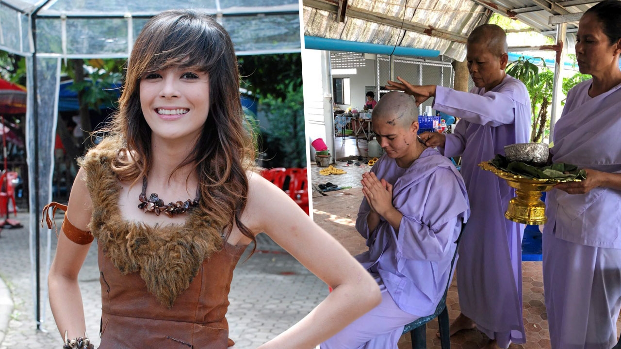 ภาพ น.ส.อาเมเรีย หรือ เอมี่ จาคอป อดีตนางเอก ละครที่ทนายษิทรา เบี้ยบังเกิด มาโพสต์ขณะโกนผมบวชชีในศูนย์ปฏิบัติธรรมแห่งหนึ่งใน จ.ปราจีนบุรี พร้อมฝากข้อความว่าบวชทดแทนบุญคุณพ่อแม่ ยังไม่มีกำหนดสึก.