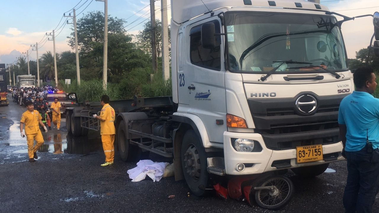 นอกจากนี้ ใกล้กันพบรถจักรยานยนต์ ยี่ห้อฮอนด้าเวฟ 125 สีแดง หมายเลขทะเบียน ตธพ-548 ชลบุรี อยู่ในสภาพถูกล้อรถพ่วง 18 ล้อ ทับจนพังเสียหาย ซึ่งบริเวณท้ายรถจักรยานยนต์ ได้ผูกมัดติดกับตะกร้าผลไม้ โดยในที่เกิดเหตุพบนายสมัย โฮกชาวนา อายุ 57 ปี อยู่บ้านเลขที่ 111/1 ม.2 ต.ชมพู อ.เนินมะปราง จ.พิษณุโลก แสดงตัวเป็นผู้ขับขี่รถพ่วง 18 ล้อ ยืนรอให้การกับเจ้าหน้าที่ตำรวจ