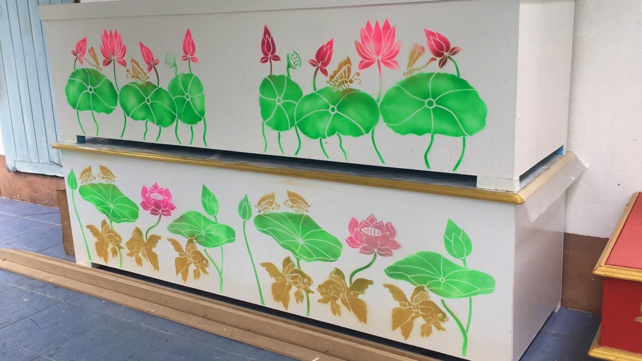 ด้าน พระสมทรง กล่าวว่า อาตมาได้นำเงินที่ได้จากการทำบุญของญาติโยมมาซื้ออุปกรณ์ อาทิ ไม้อัดแปรรูป สี และอุปกรณ์ช่างต่างๆ มาไว้ที่หน้ากุฏิของอาตมา เพื่อที่สร้างโลงศพขี้นมาไว้แจกจ่ายให้กับประชาชนที่ยากไร้ โดยอาตมาได้ทำแบบนี้มาหลายปีแล้ว และโลงศพนั้นได้แจกจ่ายไปแล้วกว่าหลายสิบใบ โดยอยากจะฝากถึงประชาชนที่ไม่มีเงินพอที่จะซื้อโลงศพให้เดินทางมารับได้เลย โดยที่ไม่มีค่าใช้จ่ายใดๆ ทั้งสิ้นอีกด้วย.