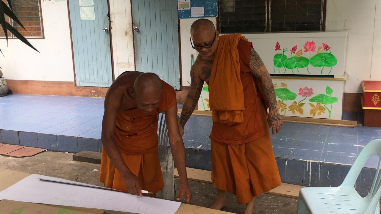 เมื่อเดินทางมาถึงพบกับพระลูกวัดรูปดังกล่าว คือ พระสมทรง สมจิตโต อายุ 76 ปี พรรษาที่ 4 กำลังลงมือทำโลงศพอยู่อย่างไม่หยุดพัก โดยโลงศพที่ทางพระสมทรงได้สร้างขึ้นมานั้น ทำด้วยไม้อัดแปรรูป ก่อนนำมาประกอบกันจนเปรูปทรง หลังจากนั้นจึงนำสีมาทาก่อนตบท้ายด้วยลงลายดวกบัวเพื่อสร้างสีสันให้กับโลงศพซึ่งการทำโลงศพขึ้นมานั้นเนื่องจากเห็นสภาพความเป็นอยู่ของชาวบ้านลำบาก และได้นำเงินที่ได้จากการทำบุญของชาวบ้านไปอุปกรณ์ต่างๆ มาสร้างโลงศพไว้แจกจ่ายชาวบ้าน โดยจัดเป็นโครงการมอบโลงศพเอื้ออาทรแจกฟรี ด้วยจิตกุศลอยากช่วยเหลือเพื่อนมนุษย์ด้วยกัน