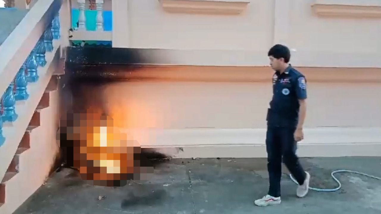 ด้าน ผกก.สภ.หนองปรือ เปิดเผยว่า สำหรับคดีนี้หลังเกิดเหตุเจ้าหน้าที่ตำรวจได้ตรวจสอบที่เกิดเหตุ และพยานหลักฐานต่างๆ จากกล้องวงจรปิดพบว่า ผู้ตายนั้นเดินทางเข้ามาในวัดเพียงคนเดียว จากนั้นเพียงไม่นานก็เกิดเปลวไฟลุกขึ้น ไม่มีบุคคลอื่นอยู่ภายในบริเวณที่เกิดเหตุ ประกอบกับปากคำจากญาติที่ระบุว่า ผู้ตายอาการป่วยโรครุมเร้า และมีการกราบลาผู้เป็นแม่ก่อนออกจากบ้าน จึงเชื่อว่าเป็นการฆ่าตัวตาย ซึ่งญาติไม่ได้ติดใจเอาความแต่อย่างใด.