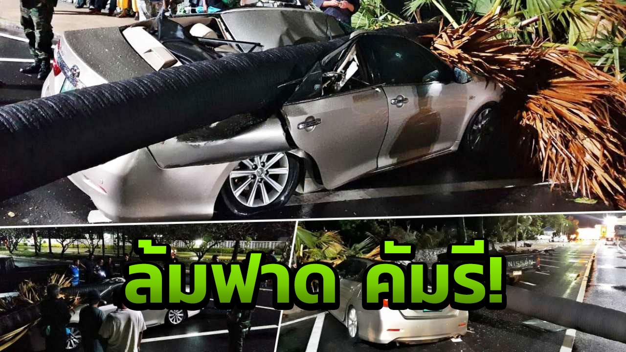 ต้นตาลริมทะเลสัตหีบ อายุนับร้อยปี เจอพายุลมแรงระลอกล่าสุด ทานไม่ไหว โดนพัดหักโค่นล้มลงมาทับรถเก๋งคัมรี หนุ่มใหญ่ชาวกรุง จอดลงไปกินข้าว กลับมาอีกที เจอรถโดนทับพังยับเยิน