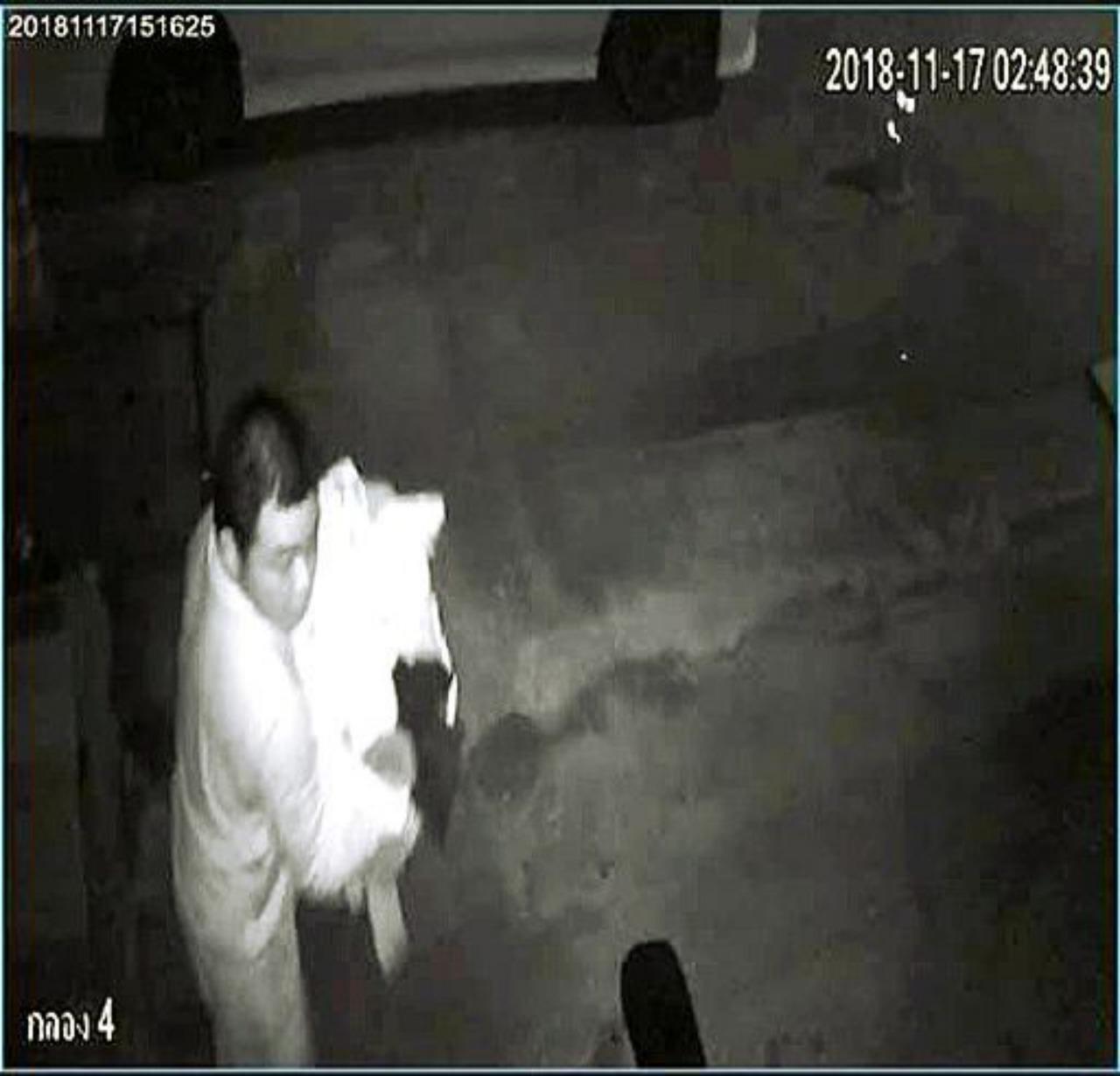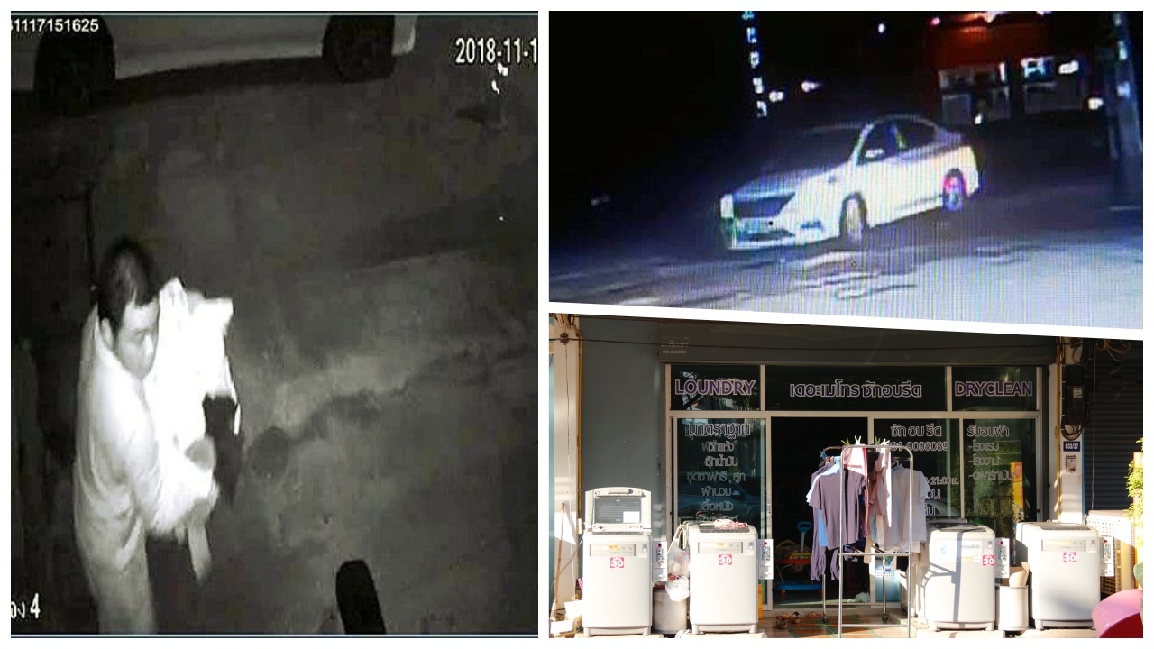 โดยรถของคนร้ายได้ขับรถเก๋งสีขาวเข้ามาในหมู่บ้าน และวนเข้ามาจอดที่หน้าร้าน ก่อนที่จะมีชายรูปร่างอวบ-ท้วม ใส่ชุดคล้ายชุดนอน ลงมาจากรถ และตรงเข้ามาลักเสื้อผ้าที่ลูกค้าที่นำมาซักทิ้งไว้ หอบขึ้นรถไปอย่างหน้าตาเฉย จากนั้นก็ขับรถเก๋งออกจากหมู่บ้านไป