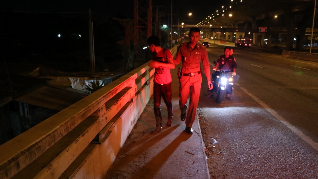 หนุ่ม 24 เดินเท้ามานั่งกินเบียร์กับเพื่อนที่สะพานข้ามแม่น้ำบางปะกง เพราะเครียดเรื่องปัญหาส่วนตัว แล้วตัดสินใจกระโดดน้ำฆ่าตัวตาย สุดท้ายตำรวจไปพบตัวกำลังเดินขึ้นจากน้ำ ก่อนจะนำทั้งสองคนส่งกลับที่พัก...