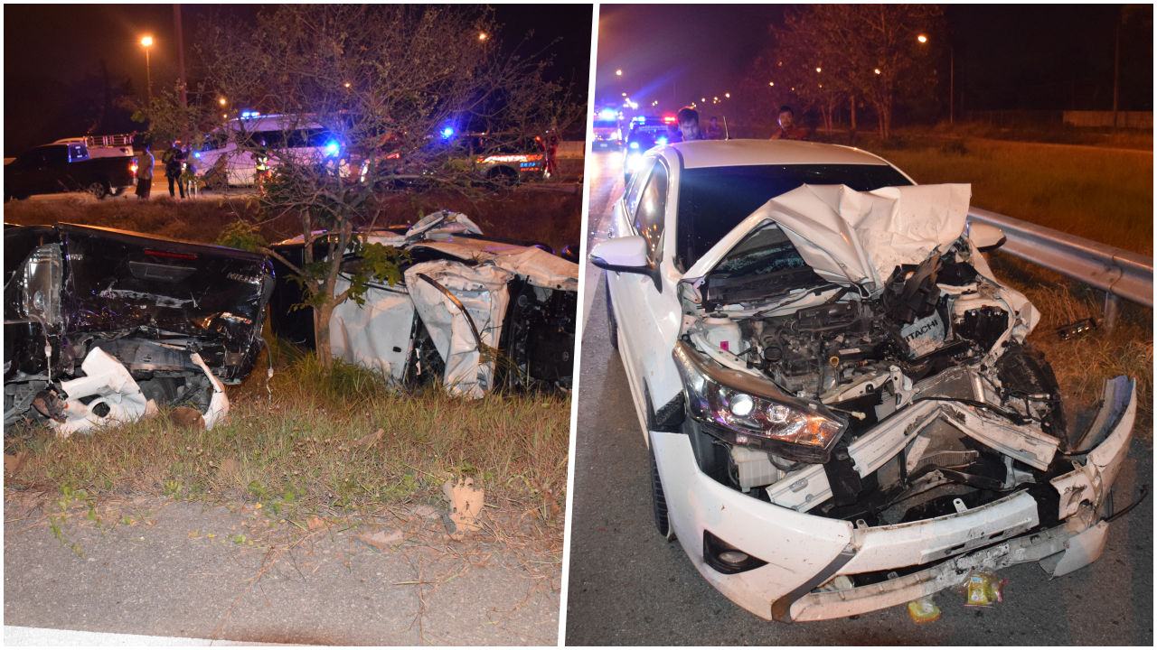 นอกจากนี้ยังมี น.ส.อทิตยา พันธ์สวัสดิ์ อายุ 19 ปี ท้อง 6 เดือน ได้รับบาดเจ็บ มีบาดแผลแตกที่ใบหน้า กู้ภัยฯ นำส่ง รพ.ชลบุรี และมีผู้ได้รับบาดเจ็บเล็กน้อยอีก 5 คน ไม่ไปโรงพยาบาล ข้างถนนมีรถกระบะ ยี่ห้อโตโยต้า รีโว่ สีขาว ทะเบียน 6 กณ 4097 กรุงเทพมหานคร พลิกตะแคงขวาสภาพพังยับ โดยมีรถกระบะ ยี่ห้อโตโยต้า รีโว่ สีดำ ทะเบียนป้ายแดง ถ 9134 กรุงเทพมหานคร สภาพด้านหน้าพังยับเยิน มีนายธนพัฒน์ สังข์ขวาง อายุ 40 ปี เป็นคนขับ ที่กลางถนนพบรถเก๋งยี่ห้อโตโยต้า ยาริส สีขาว ทะเบียน 4 กร 6208 กรุงเทพมหานคร ด้านหน้าพัง มีนายบรรหาร ภุมมามั่น อายุ 23 ปี เป็นคนขับ และรถกระบะยี่ห้อโตโยต้า วีโก้ สีขาว ทะเบียน 1 ฒจ 8737 กรุงเทพมหานคร ด้านหน้าพังยับเยิน