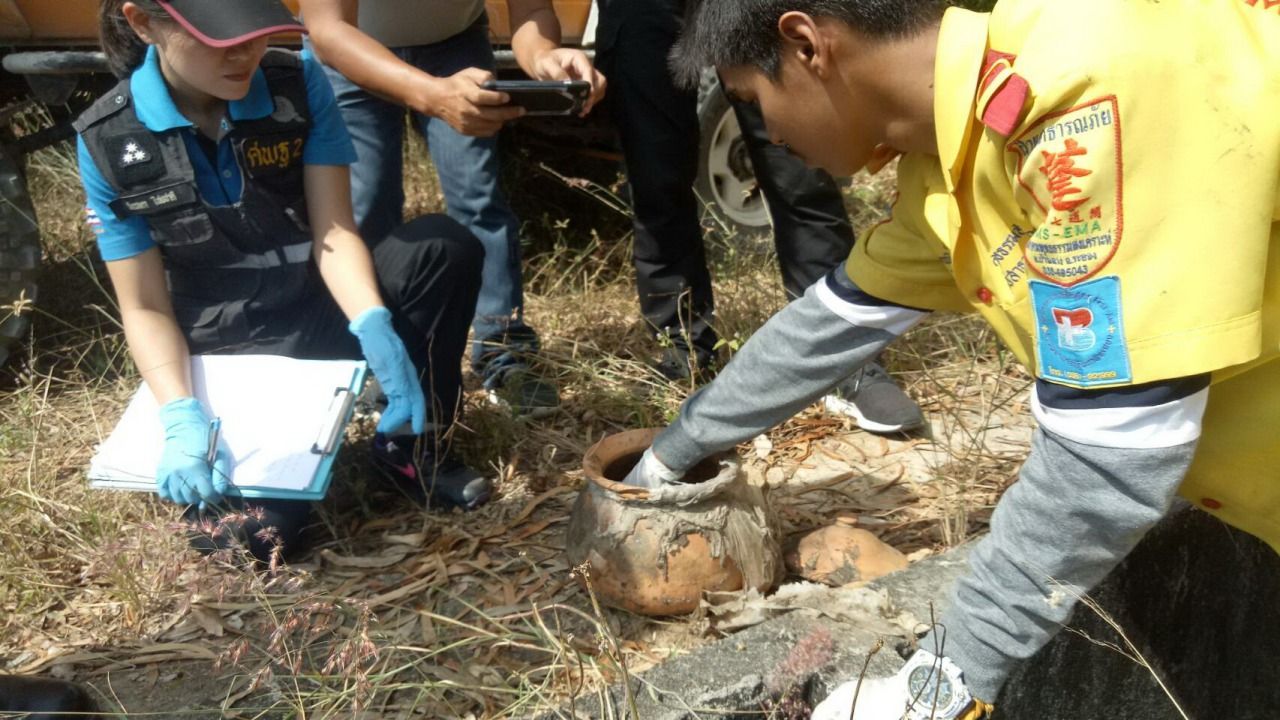 นายธนเดช เจียเอกราช กรรมการสมาคมพุทธธรรมสงเคราะห์ กล่าวว่า สำหรับวันนี้เจ้าหน้าที่ตำรวจได้ตรวจสอบจำนวนศพที่หายไปว่ามีจำนวนเท่าไร แล้วมาพบหม้อดินดังกล่าว เชื่อว่าจะเป็นพิธีกรรมไสยศาสตร์-มนต์ดำของเขมร ทำทิ้งไว้ตามคำให้การของกู้ภัยที่เข้ามาพบในวันเกิดเหตุ เจ้าหน้าที่กู้ภัยที่เดินทางมาซุ่มจับกลุ่มคนร้ายคืนวันเกิดเหตุ เปิดเผยกับตนว่า ในคืนที่นำกำลังเจ้าหน้าที่อาสาสมัครของมูลนิธิพุทธธรรม เพื่อจับกุม พบว่ามีคนร้ายมากกว่า 10 คน มีไฟที่หัวกำลังประกอบพิธีกรรมบางอย่าง แล้วกลุ่มหมอผีเขมรได้ยินเสียงเจ้าหน้าที่มาซุ่มจับกุมเสียก่อน จึงวิ่งหนีกระจัดกระจายไปคนละทิศละทาง ซึ่งป่าช้าเป็นสถานที่เปิด จึงทำให้ไม่สามารถจับตัวกลุ่มหมอผีได้ ซึ่งถ้าหากวันนั้นจับไปได้ก็จะสามารถคลี่คลายได้ว่าประกอบพิธีอะไร สำหรับตอนนี้ก็จัดชุดลาดตระเวนเฝ้าดูพฤติกรรมหากพบกลุ่มต้องสงสัยทางเจ้าหน้าที่เฝ้าระวังสุสานไม่ให้เข้ามาทำพิธีกรรมอีก