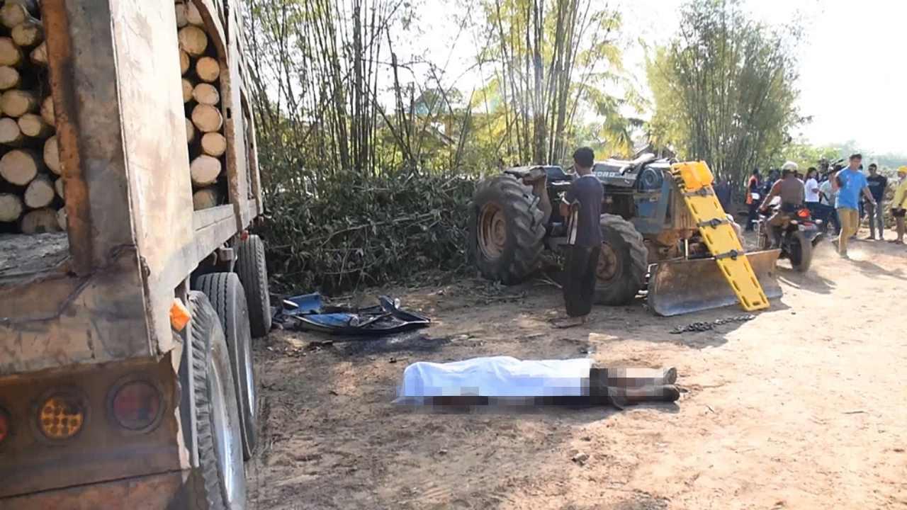 จากการสอบสวนนายบุญร้อน ชาย อายุ 38 ปี เพื่อนคนงานชาวกัมพูชา ซึ่งอยู่ในเหตุการณ์ บอกว่า ก่อนเกิดเหตุ ตนเองพร้อมเพื่อนคนงานอีก 3-4 คน กำลังช่วยกันนำไม้ซุงยางพาราที่ตัดไว้เป็นท่อนลำเลียงขึ้นในพ่วงรถบรรทุกที่จอดอยู่กลางเนิน หลังจากขนไม้ใส่พ่วงบรรทุกได้ครึ่งคัน นายปะ ผู้ตาย ได้ขับรถแทรกเตอร์ขึ้นมาทำการลากจูงตัวพ่วง แต่ขณะที่กำลังลากลงจากเนิน พ่วงบรรทุกที่มีไม้ซุงเกือบครึ่งคัน และมีน้ำหนักมากกว่า ได้เสียการควบคุมไหลลงเนินด้วยความเร็ว ก่อนพุ่งชนกระแทกกับรถแทรกเตอร์แล้วเกิดแรงเหวี่ยงกระชากจนพลิกหงายท้อง นายปะ ซึ่งเป็นคนขับ ถูกเหวี่ยงร่างหลุดจากตัวรถ ก่อนที่จะถูกรถแทรกเตอร์พลิกคว่ำทับเข้าที่ศีรษะและลำตัว ทำให้เสียชีวิตในที่สุด.