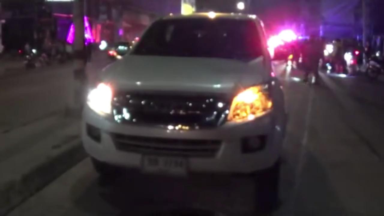 ห่างกันพบรถกระบะยี่ห้ออีซูซุ รุ่นดีแมคซ์ สีขาว ทะเบียน ขธ 3734 ชลบุรี จอดอยู่ สภาพกระจังหน้าและไฟหน้ารถฝั่งซ้ายแตก โดย นางชุติอร (ขอสงวนนามสกุล) อายุประมาณ 50 ปี ผู้ขับรถ อ้างว่าตนขับรถพาครอบครัวมาจากหน้าศาลากลาง จ.ชลบุรี กำลังจะกลับบ้าน พอถึงที่เกิดเหตุตนมองไม่เห็นคนข้ามถนนจึงชนเข้าเต็มแร งทำให้กระเด็นไปไกลกว่า 10 เมตร ได้รับบาดเจ็บและเสียชีวิต