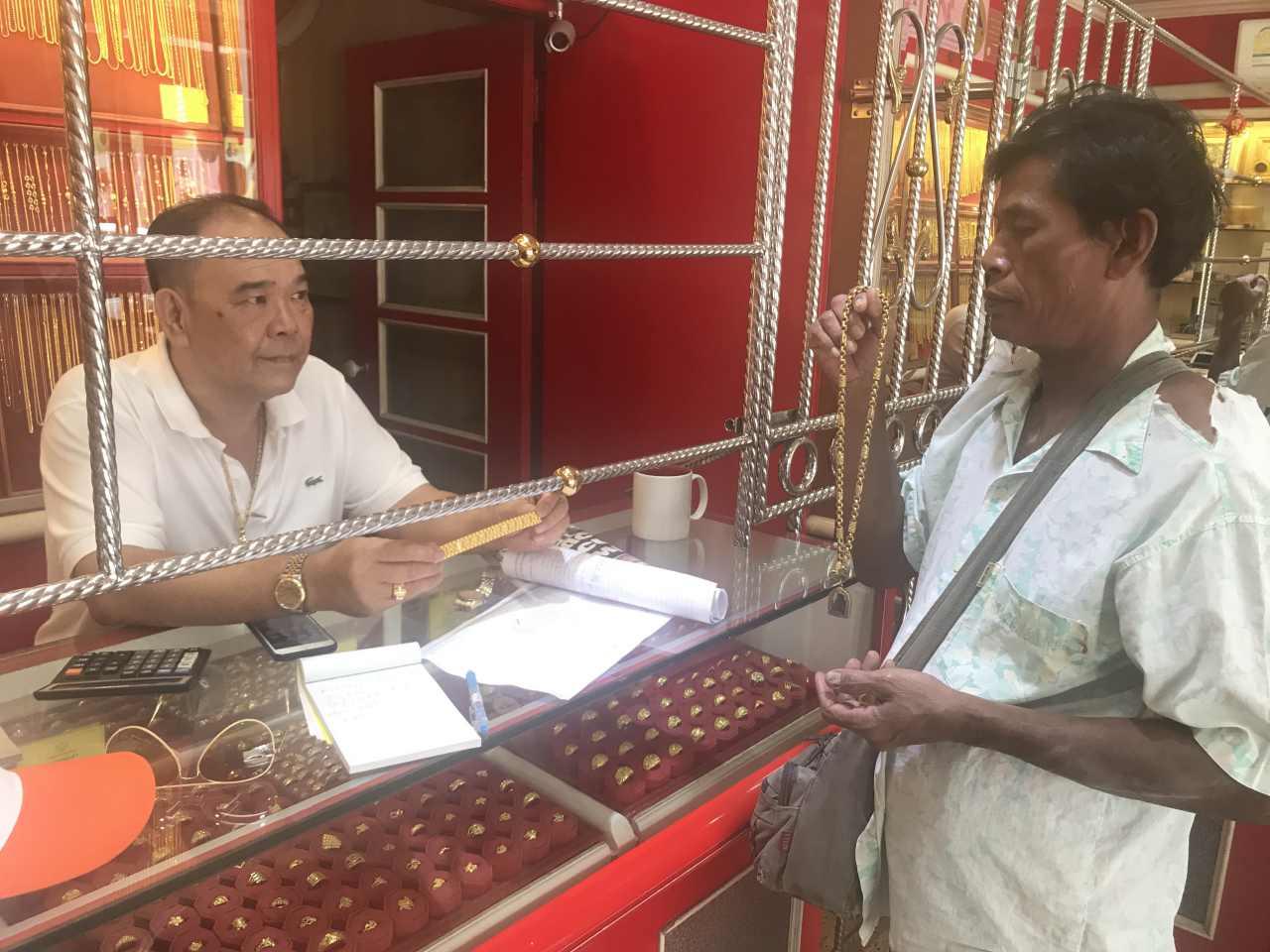 หนุ่มใหญ่พ่อค้าขนมไทย ทำสร้อยข้อมือตกหาย 5 บาท แจ้งตำรวจแล้วรุดไปร้านทองทันที ควัก 1 แสน ซื้อเส้นใหม่ลายเดิม อ้างกลัวเมียรู้ พบสวมเสื้อเก่าขาด เป็น "ผ้าขี้ริ้วห่อทอง"