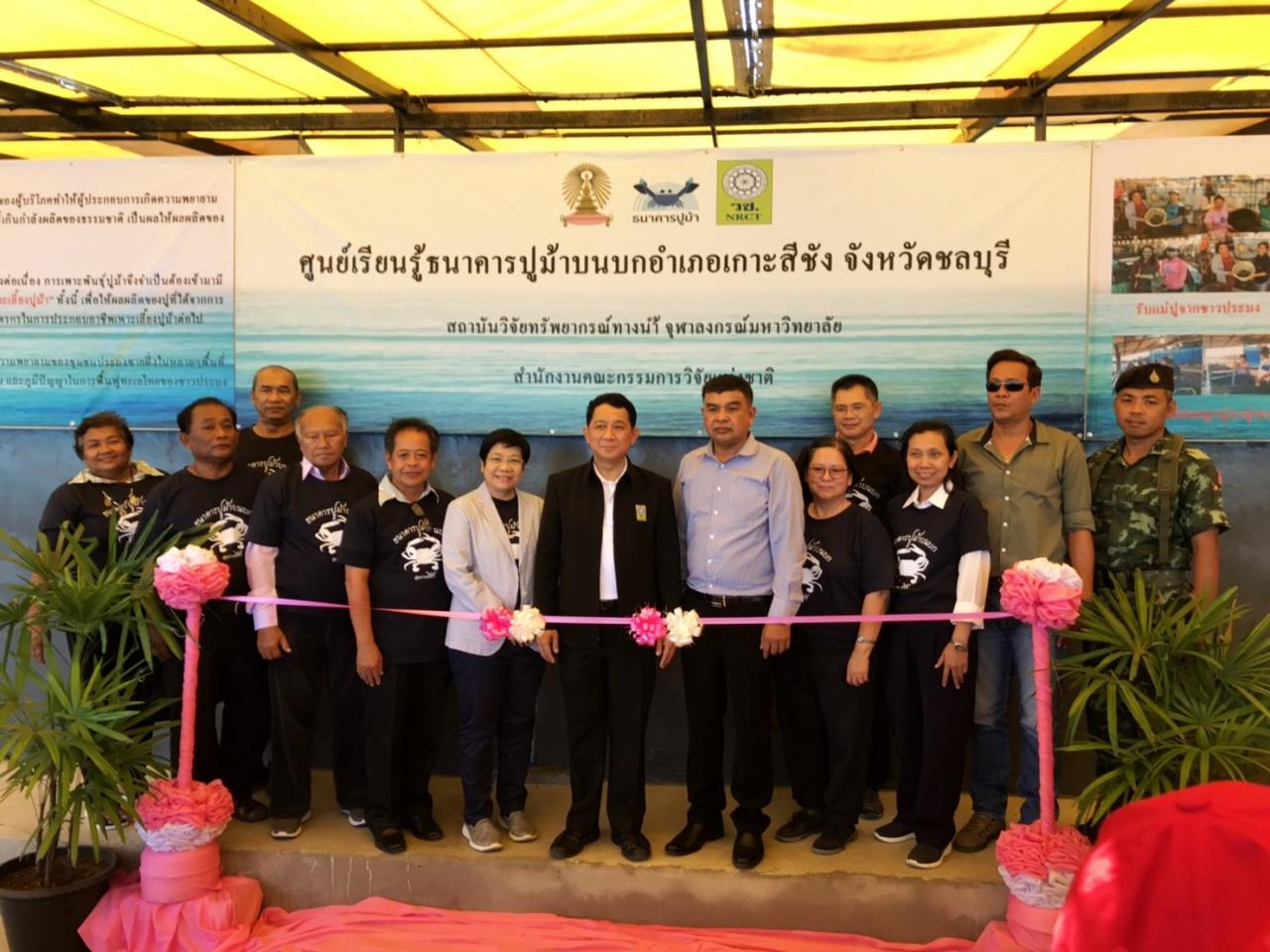 ทั้งนี้ วช. และสถาบันวิจัยทรัพยากรทางน้ำ จุฬาลงกรณ์มหาวิทยาลัย ได้จัดตั้งธนาคารปูม้าบนบกโดยความร่วมมือของชุมชนในพื้นที่เกาะสีชังจำนวน 22 ธนาคาร และต้นแบบธนาคารปูม้าประจำตำบลแสนสุข อำเภอเมือง จังหวัดชลบุรี 3 ธนาคาร และในวันที่ 22 ม.ค.62 เวลา 13.00 น. ได้ทำการเปิดศูนย์เรียนรู้ธนาคารปูม้าชุมชนบนบกขึ้น ณ ศูนย์เรียนรู้ธนาคารปูม้าชุมชนบนบก อำเภอเกาะสีชัง จังหวัดชลบุรี โดยมี ศ.นพ.สิริฤกษ์ ทรงศิวิไล เลขาธิการคณะกรรมการวิจัยแห่งชาติ เป็นประธานในพิธี