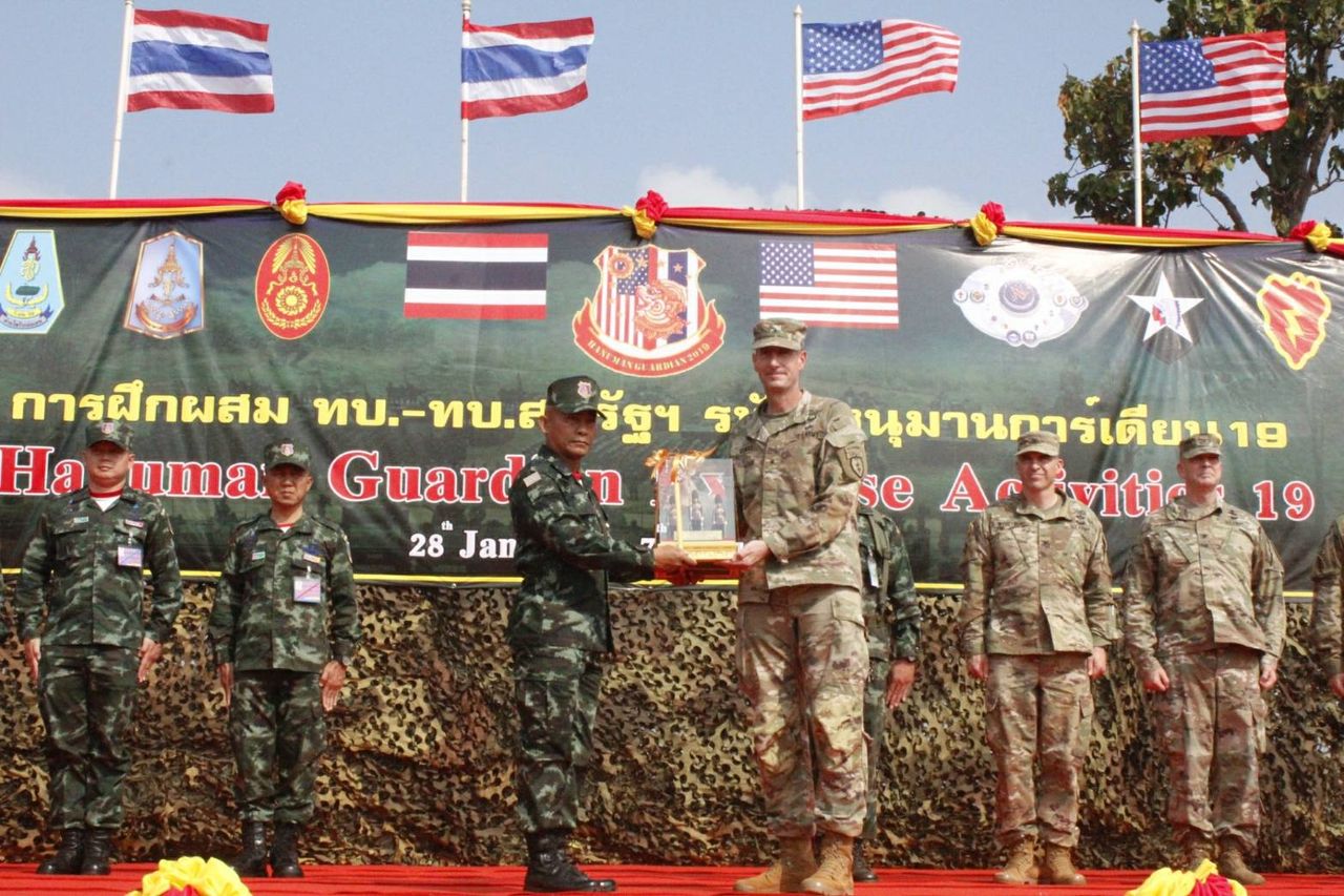 เมื่อเวลา 10.30 น. วันที่ 7 ก.พ.62 พล.ต.ปิยพงศ์ กลิ่นพันธุ์ ผบ.พล.ร.2 รอ. และพลจัตวาแอนดรูว์ เพรสตัน รอง ผบ.พล.ร.25 (สหรัฐฯ) เป็นประธานร่วมกัน ในพิธีปิดการฝึกผสมระหว่างกองทัพบกไทยและกองทัพบกสหรัฐฯ รหัส "หนุมานการ์เดียน ๑๙" ซึ่งเป็นการฝึกตามโครงการฝึกระหว่างหน่วยของกองทัพบก กับกองทัพมิตรประเทศ มีความมุ่งหมายเพื่อเสริมสร้างความร่วมมือทางทหารระหว่างทั้ง 2 ประเทศ เพื่อเป็นโอกาสในการพัฒนาทักษะและเพิ่มพูนขีดความสามารถของกำลังพล ในเรื่องการปฏิบัติทางยุทธวิธีของหน่วยทหาร การฝึกผสมฯ ในครั้งนี้ เป็นครั้งที่ 7 โดยเริ่มทำการฝึกตั้งแต่วันที่ 28 ม.ค. - 7 ก.พ.62 ใช้พื้นที่การฝึกบริเวณค่ายนิมมาณกลยุทธ ร.12 พัน.2 รอ. และพื้นที่บ้านภักดีแผ่นดิน - บ้านคลองเกลือ อำเภอวัฒนานคร จังหวัดสระแก้ว โดยมีกองพลทหารราบที่ 2 รักษาพระองค์ เป็นหน่วยหลักที่รับผิดชอบ และจัดกำลังกองทัพบกไทยเข้าร่วมการฝึก