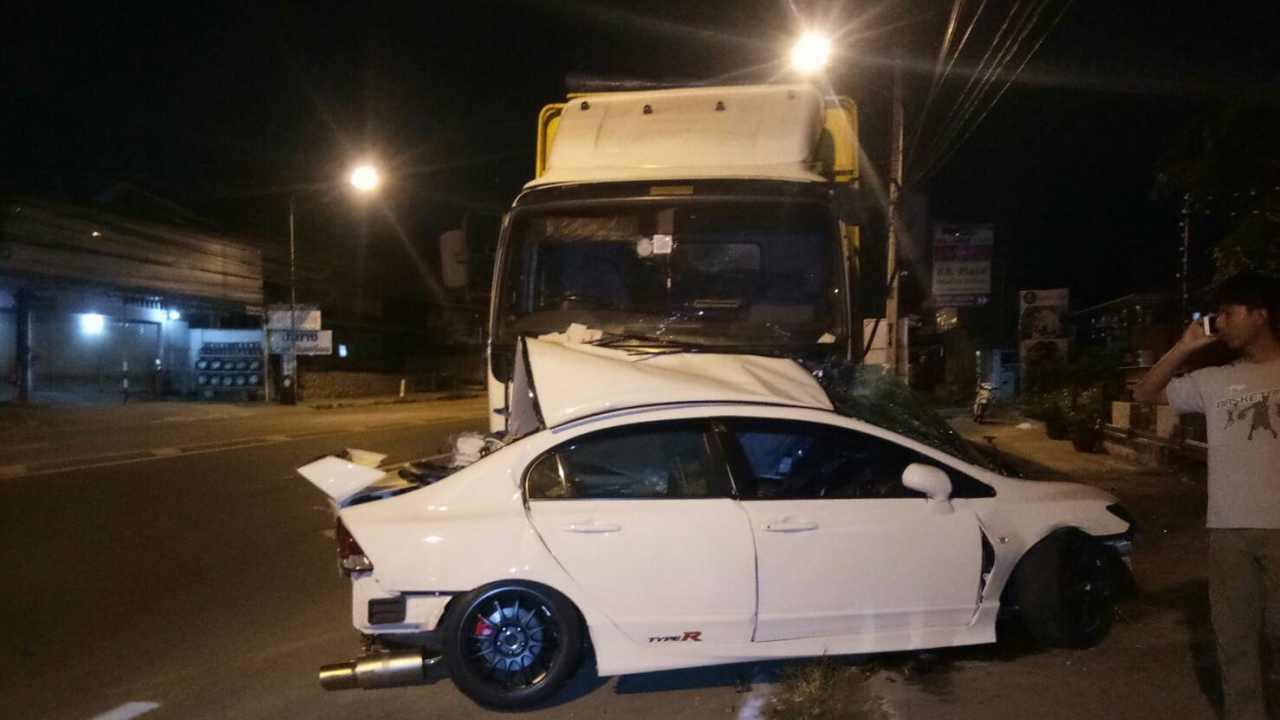 เวลา 03.30 น. วันที่ 22 ก.พ. พ.ต.ท.เกริกศิลป์ บูรณ์เจริญ สารวัตรเวรสอบสวน สภ.ศรีราชา อ.ศรีราชา จ.ชลบุรี ได้รับแจ้งจากหน่วยกู้ภัยสว่างประทีปศรีราชา ว่าเกิดอุบัติเหตุรถยนต์เก๋งเสียหลักข้ามเลนไปชนรถบรรทุกหกล้อ มีผู้บาดเจ็บอาการสาหัสติดอยู่ภายในรถ เหตุเกิดที่บนถนนสายไร่กล้วย-นาพร้าว บริเวณโค้งหนองน้ำดำ ก่อนถึงวัดจีน ประมาณ 100 เมตร หมู่ 7 ต.สุรศักดิ์ อ.ศรีราชา จ.ชลบุรี หลังรับแจ้งจึงรุดไปตรวจสอบที่เกิดเหตุ