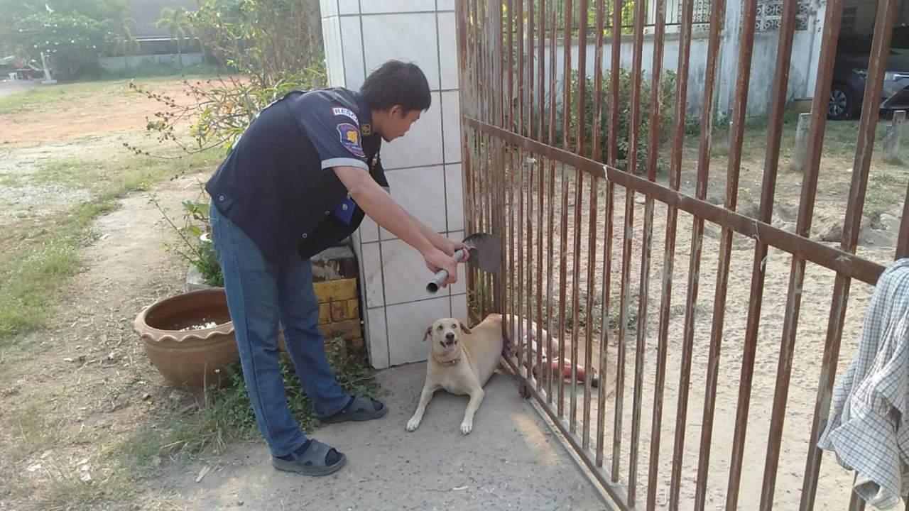 เมื่อเวลา 09.30 น. ศูนย์วิทยุหน่วยกู้ภัยสว่างประทีป ศรีราชา อำเภอศรีราชา จังหวัดชลบุรี ได้รับแจ้งจากนางนิต พิริยะสุข อายุ 62 ปี อยู่บ้านเลขที่ 44/1 หมู่ 3 ตำบลสุรศักดิ์ อำเภอศรีราชา จังหวัดชลบุรี ว่า สุนัขของตนที่เลี้ยงไว้ได้ติดคาประตูรั้วบ้าน จึงอยากให้เจ้าหน้าที่เดินทางมาช่วยเหลือหลังรับแจ้งจึงจะนำกำลังอาสาสมัครออกให้การช่วยเหลือสุนัขตัวดังกล่าวตามที่ได้รับแจ้ง