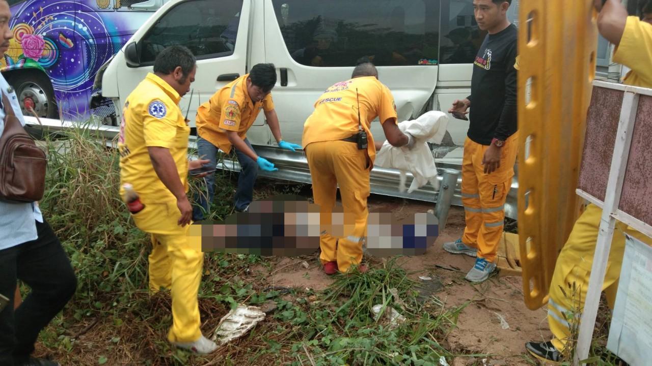 เมื่อเวลา 06.25 น. วันที่ 25 มี.ค.62 พ.ต.ท.สมพงษ์ อติวงศ์ธาดา สารวัตรเวร (สอบสวน) สภ.หนองขาม อ.ศรีราชา จ.ชลบุรี ได้รับแจ้งว่า มีรถบัสไหลมาช่วงท้ายชนกับรถตู้ที่จอดรอรับส่งพนักงานโรงงานจนเหยียบคนที่ยืนอยู่ริมถนนเสียชีวิตคาที่ เหตุเกิดที่ถนนสุขาภิบาล 8 ขาเข้าปากร่วม บริเวณโค้งยายแป้น หมู่ 7 ต.บึง อ.ศรีราชา จ.ชลบุรี โดยบนรถตู้มีผู้โดยสารได้รับบาดเจ็บเล็กน้อยเป็นชาย 1 ราย จึงรีบรุดไปตรวจสอบพร้อมด้วยเจ้าหน้าที่หน่วยกู้ภัยเพียวเยี้ยงไท้ศรีราชา