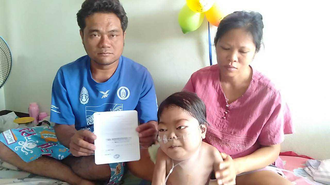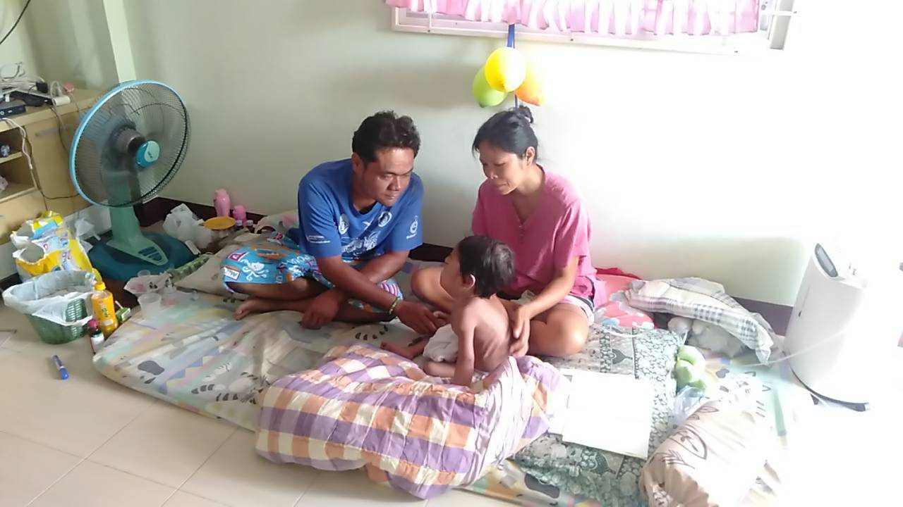 น.ส.สุรัธน์ชญา ผู้เป็นแม่ กล่าวว่า น้องธาย ป่วยแบบนี้มาตั้งแต่เกิด โดยเข้ารับการรักษาที่โรงพยาบาลแหลมฉบัง ก่อนถูกส่งตัวไปที่โรงพยาบาลชลบุรี ซึ่งทางแพทย์แจ้งกับตนว่าให้ทำใจไว้ เนื่องจากน้องอาจจะอยู่ได้ไม่นาน หรือถ้าผ่าตัดก็มีโอกาสเสี่ยงที่น้องจะเสียชีวิต ซึ่งค่าใช้จ่ายในแต่ละครั้งที่พาน้องไปหาหมออยู่ที่ครั้งละ 4,000-5,000 บาท