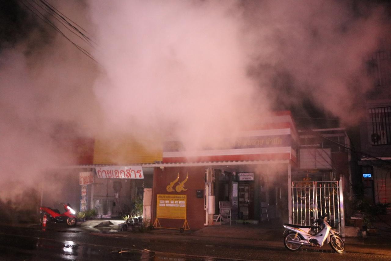 น.ส.กอบแก้ว เสวีวัลลภ อายุ 38 ปี เจ้าของร้านเจ้ทรายบะหมี่เป็ดย่าง เผยว่า ขณะที่กำลังเก็บร้านทำความสะอาด ลูกน้องที่อยู่ในร้านเห็นว่ามีไฟช็อตที่บนเสาไฟฟ้าหน้าบริษัท 59 เซอร์วิส แอนด์ ซัพพลาย จำกัด ก่อนจะมีไฟลุกไหม้ ซึ่งตนก็รีบไปตามกู้ภัยทันทีเพราะเกรงว่าไฟจะลุกลาม ซึ่งขณะเกิดเหตุฝนนั้นตกปรอยๆ พอกู้ภัยมาก็เป็นช่วงที่ไฟเกิดลัดวงจรแล้วลุกไหม้บนเสาไฟฟ้าหน้าร้านอย่างรวดเร็ว ก่อนที่ตำรวจและกู้ภัยจะประสานรถดับเพลิงให้มาดับได้สำเร็จ เบื้องต้นคาดเกิดจากไฟฟ้าลัดวงจร.