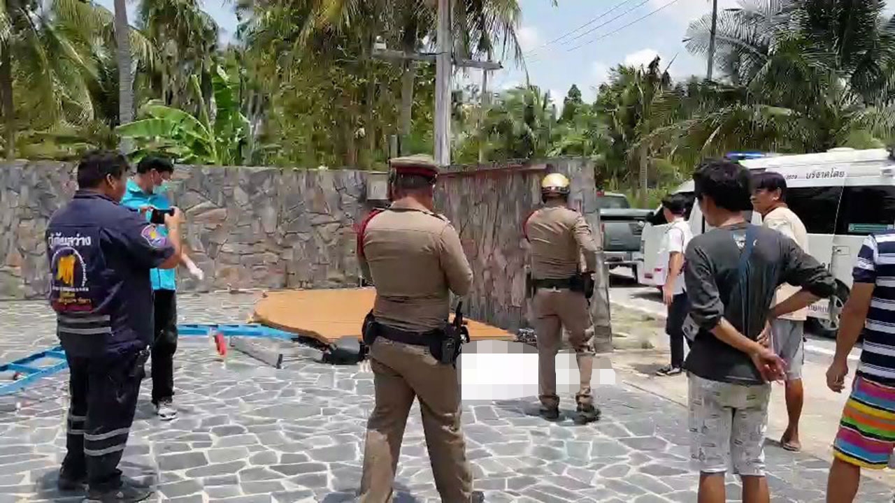 เหตุสลดใจเด็กหนุ่มวัยรุ่นช่วยอดีตพ่อเลี้ยงฝรั่งชาวเบลเยียมซ่อมประตูบานเลื่อนไฟฟ้ารั้วหน้าบ้าน เคราะห์ร้ายประตูล้มทับดับอนาถ ส่วนอดีตพ่อเลี้ยงบาดเจ็บเล็กน้อยรายนี้ เปิดเผยเมื่อเวลา 13.00 น.วันที่ 13 เม.ย. ร.ต.อ.ประกาศิต พละเดช รอง สว. (สอบสวน) สภ.บางละมุง จ.ชลบุรี รับแจ้งเหตุมีคนถูกประตูบานเลื่อนไฟฟ้าล้มทับเสียชีวิต และบาดเจ็บที่บ้านเลขที่ 122/11 หมู่ 4 ต.หนองปลาไหล อ.บางละมุง ไปตรวจสอบพร้อมด้วยหน่วยกู้ภัยมูลนิธิสว่างบริบูรณ์เมืองพัทยา