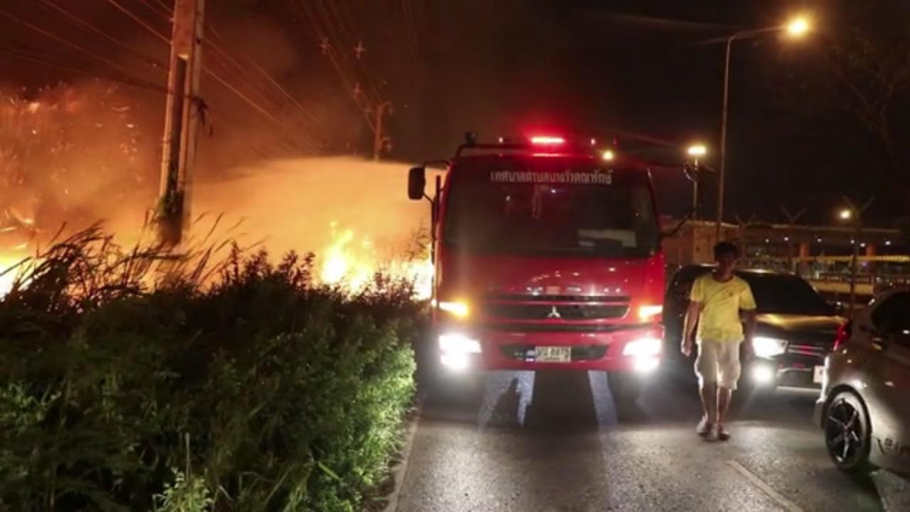 ไฟไหม้ป่าหญ้า คาดมีคนจุดไฟแล้วดับไม่ทัน ทำให้ไฟลุกลาม เจ้าหน้าที่ต้องระดมรถดับเพลิงมาช่วยควบคุมสถานการณ์ โดยใช้เวลานับชั่วโมงจึงดับสำเร็จ ก่อนจะลามไปยังโรงงานแห่งหนึ่ง...