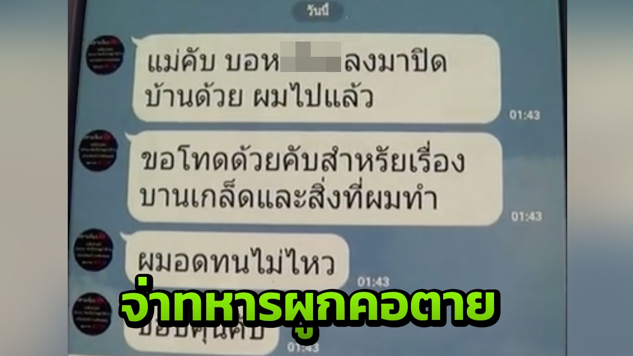 จ่าทหารราบ ขับรถจากประจวบฯ มาหาแฟนสาวที่ชลบุรี ตกดึก ผูกคอดับคาบันไดบ้าน แม่ฝ่ายหญิงเผย ก่อนเกิดเหตุ เห็นกระดกเหล้าจนหมดขวด คาดน้อยใจลูกสาว เล่นแต่โทรศัพท์ ...