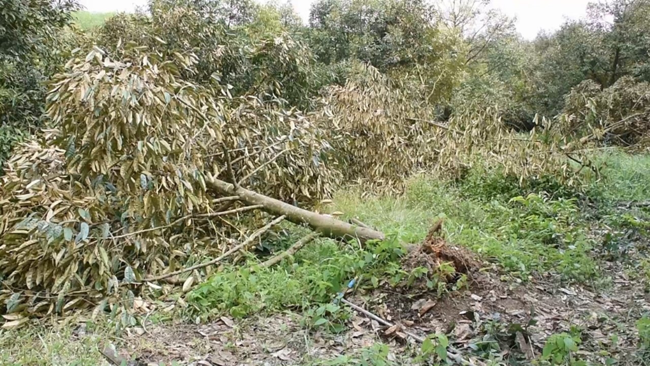 เมื่อเวลา 10.00 น. วันที่ 7 พ.ค.62 ผู้สื่อข่าวเข้าสำรวจสวนทุเรียนในพื้นที่ อ.เขาคิชฌกูฏ จ.จันทบุรี หลังจากที่ นายประเสริฐ โกศลานันท์ อายุ 55 ปี ชาวบ้าน ม.7 ต.พลวง อ.เขาคิชฌกูฏ เจ้าของสวนทุเรียนพื้นที่บ้านคลองน้ำเป็น ม.7 ต.พลวง ถูกโขลงช้างป่าที่มีมากกว่า 15 ตัว บุกเข้ามาทำลายหักโค่นต้นทุเรียนเสียหายไปกว่า 40 ต้น