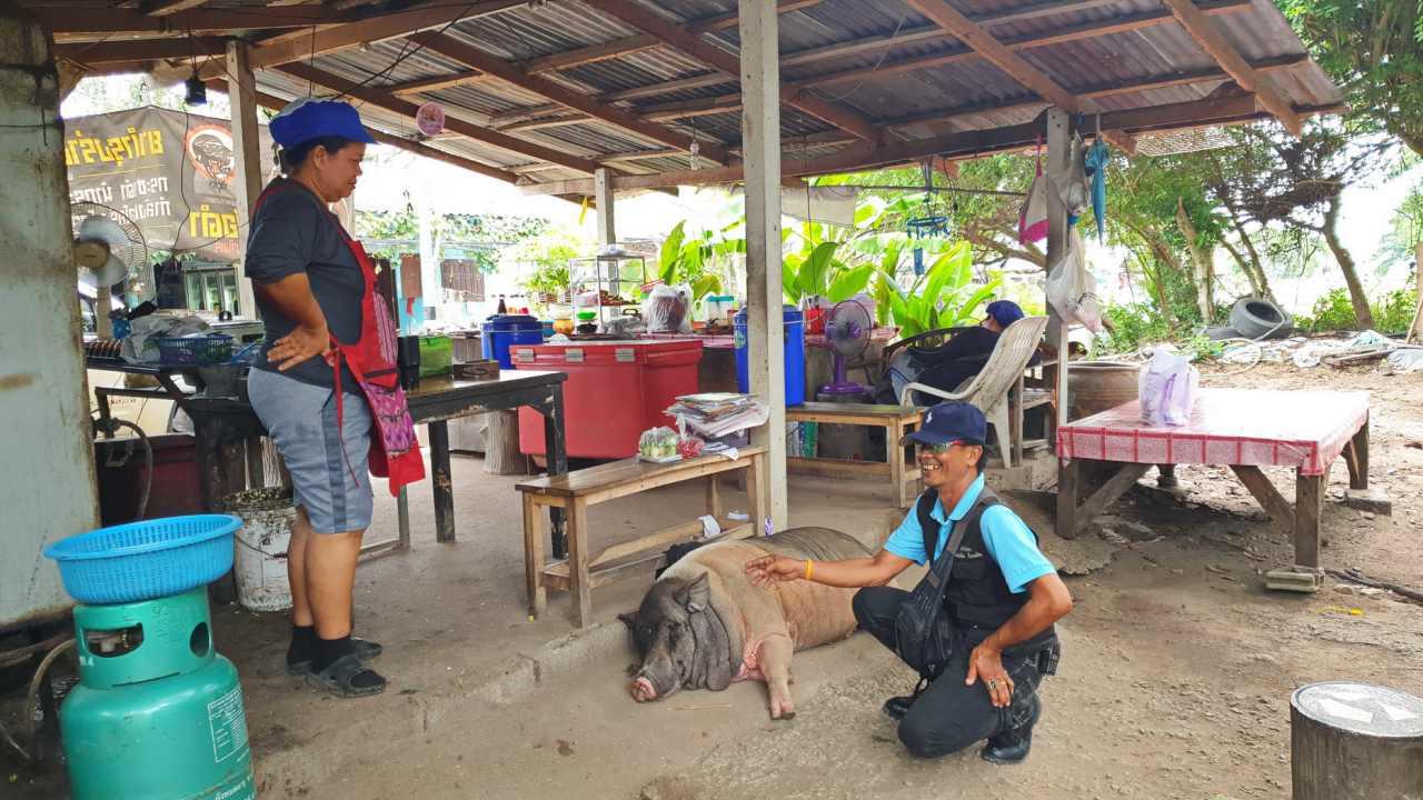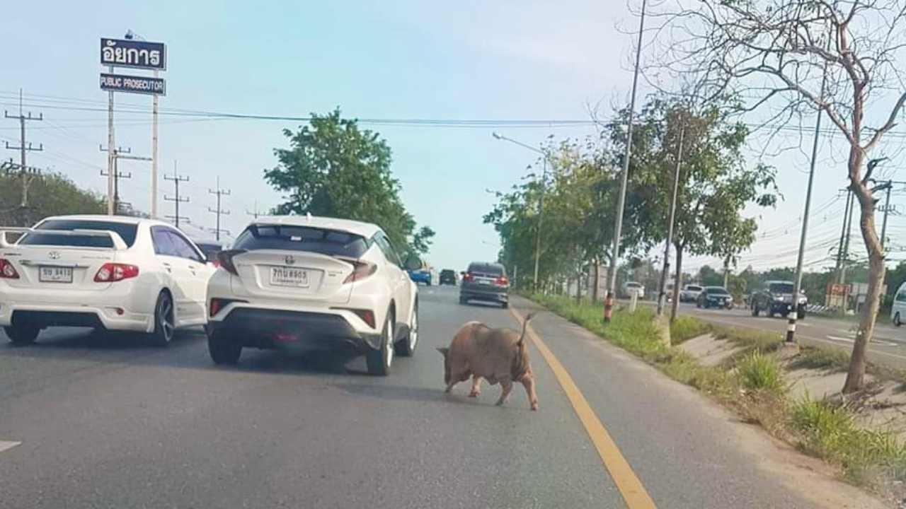 เมื่อวันที่ 28 พ.ค.62 ผู้สื่อข่าวรายงานว่า ในช่วงเช้า ได้เกิดความวุ่นวายขึ้นบริเวณสี่แยกอัยการ ม.1 ต.นาจอมเทียน อ.สัตหีบ จ.ชลบุรี หลังมีหมูขนาดใหญ่ ออกมาเดินอยู่ถนนหลวง บริเวณร้านขาย “โดนัทนมสดแฟนฉัน” สร้างความอลหม่านกับผู้ใช้รถใช้ถนน ทำให้จราจรติดขัดไปชั่วขณะ เจ้าหน้าที่ตำรวจ สภ.นาจอมเทียน ขึ้นวิทยุให้ตำรวจสายตรวจเร่งตรวจสอบ พร้อมนำหมูเข้าไปไว้ในที่ปลอดภัย แต่เมื่อมาถึงก็พบว่า หมูวิ่งหนีไปจากร้านโดนัทแล้ว