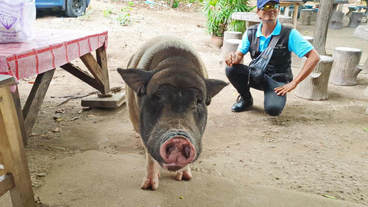 ภายหลังเกิดเรื่องอลหม่าน ผู้สื่อข่าวได้ลงพื้นที่ตามหาหมูตัวดังกล่าว จนพบว่า ไปอยู่ที่ร้านขายอาหารตามสั่ง กลางแยกชุมชนชาวเล กำลังเดินวนเวียนหาที่นอน ทราบว่ามันชื่อ เจ้าโตโน่ อายุ 4 ปี กินจนตัวอ้วนน้ำหนักตัวร่วม 100 กก.