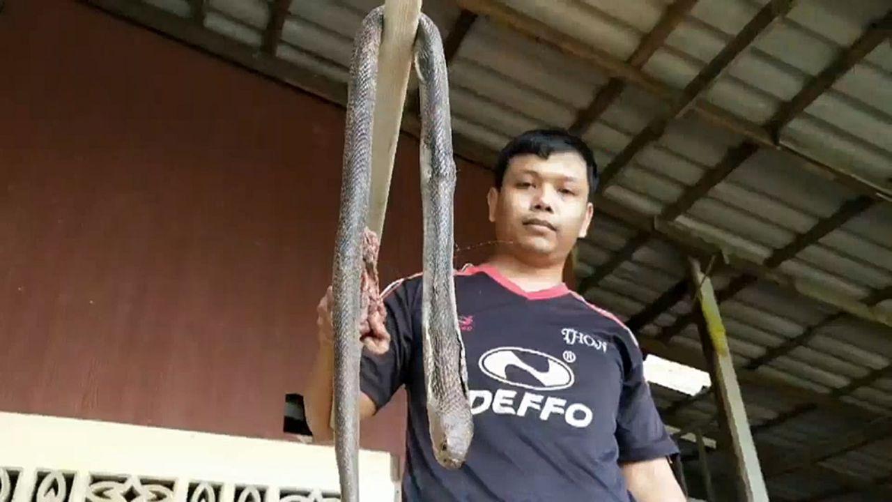 เมืองจันท์ฝนชุกทำให้งูเห่าเลื้อยเข้าบ้าน ก่อนไปเจอพิตบูลแม่พันธุ์ ที่เจ้าของผูกไว้เฝ้าบ้าน เกิดขย้ำสู้กันนัว สุดท้ายไม่รอดดับทั้งคู่ เจ้าของถึงกับร้องไห้บอกอีก3วันจะเอาไปผสมพันธุ์ที่คอกประจำ