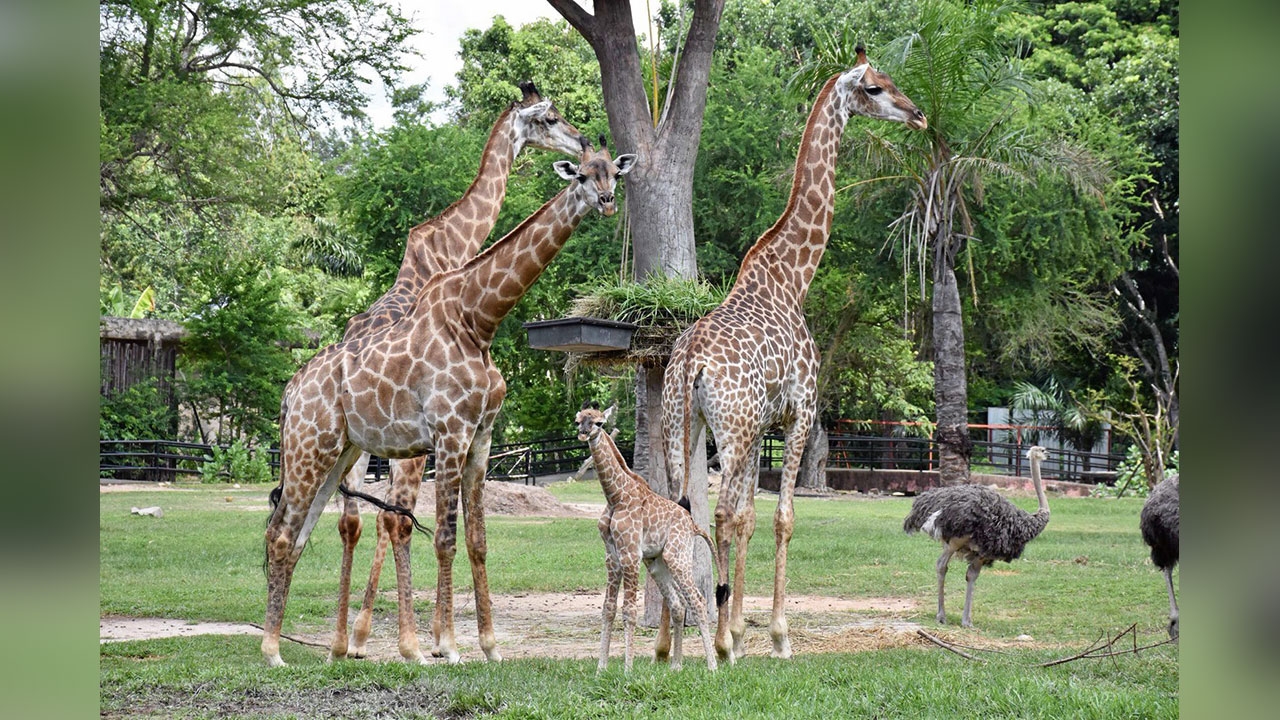 ลูกยีราฟเพศเมียสมาชิกใหม่ในสวนสัตว์เปิดเขาเขียว จ.ชลบุรี เดินคลอเคลียตามพ่อแม่อยู่ตลอดเวลา หลังเกิดมาร่างกายสมบูรณ์แข็งแรง ขณะนี้อยู่ระหว่างคัดเลือกชื่อที่เหมาะสม ร่วมโหวตผ่านทางเฟซบุ๊ก ลุ้นรับโชคของที่ระลึก.