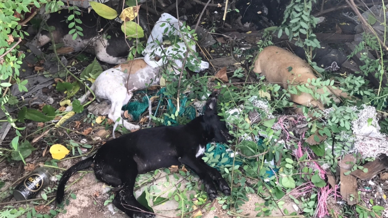 คนใจร้ายนำยาเบื่อผสมอาหารให้ลูกสุนัขกิน ก่อนชักตายเกลื่อนรวด 5 ตัว แม่สุนัขได้แต่นั่งเฝ้าร่างของลูกๆ เป็นที่อนาถใจต่อชาวบ้านที่มาเจอ เผยก่อนหน้านี้มีลูกหมา 2 ครอกรวม 8 ตัวตายไป 3 เหลือ 5 ตัว