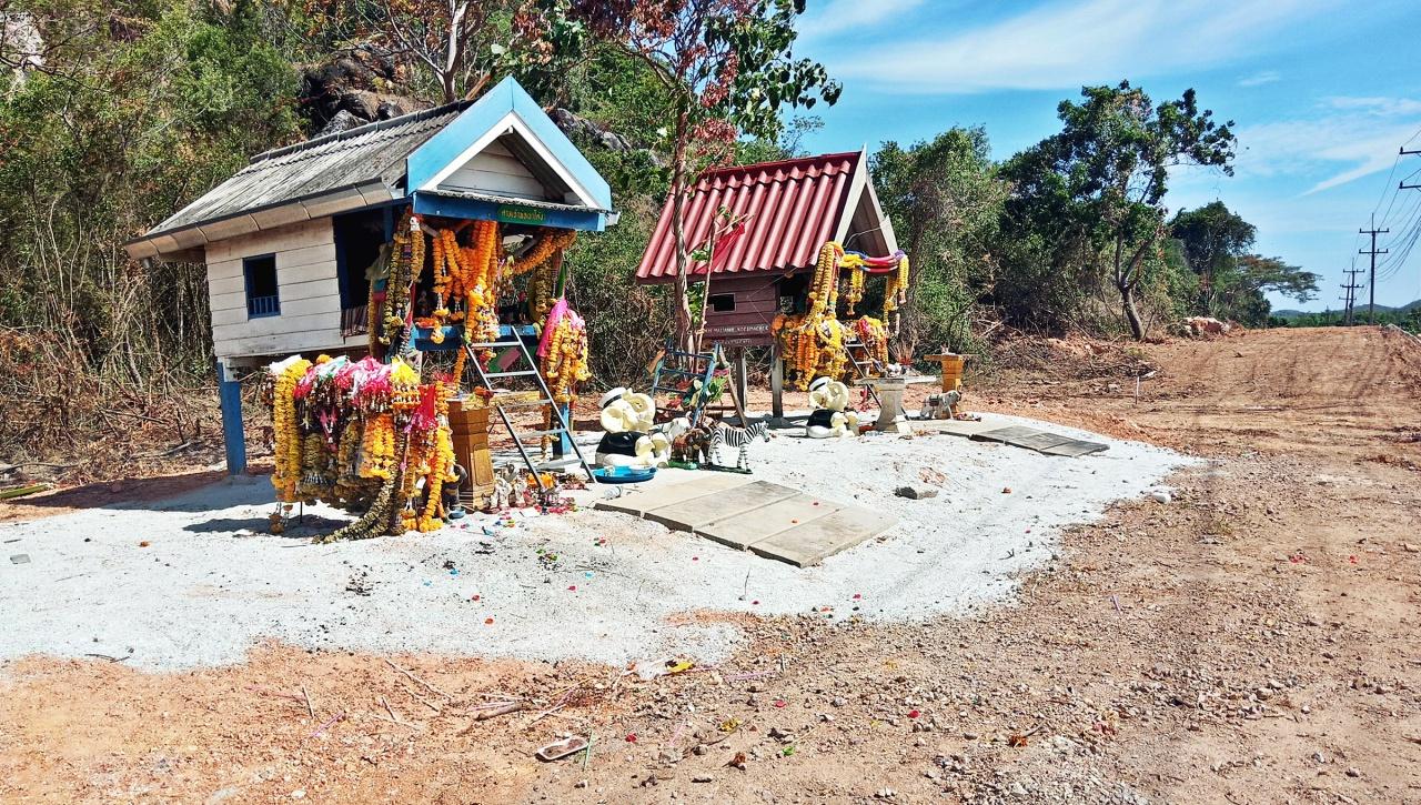 ศาลเจ้าพ่อเขาโค้ง ต.พลูตาหลวง อ.สัตหีบ จ.ชลบุรี หรือแดนประหารในอดีตเมื่อ 48 ปีก่อน ถูกย้ายจากแนวก่อสร้างขยายทางหลวงหมายเลข 3 ขึ้นไปบนเชิงเขาแล้ว โดยไม่ได้รื้อหรือยุ่งตัวศาลแต่อย่างใด