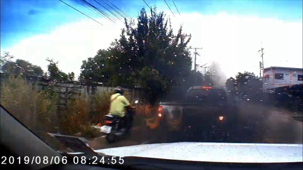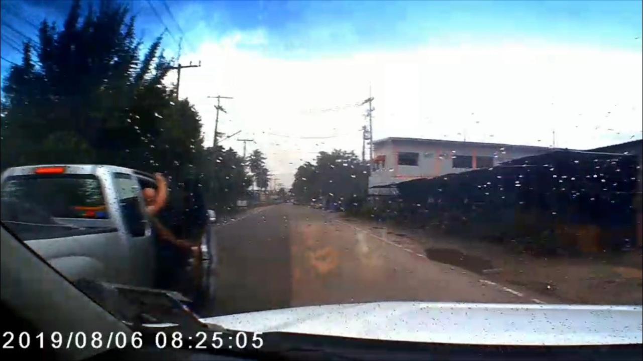 กระบะอีซูซุที่เมืองชล โชว์ความห้าวเป้ง ขับปาดหน้ากระบะสาวโรงงาน โชว์เบิร์นยาง เร่งปล่อยควันดำ แถมปาของใส่จนรถบุบ ผู้เสียหายนำหลักฐานคลิปกล้องหน้ารถโร่แจ้งตำรวจหนองขาม ดำเนินคดี