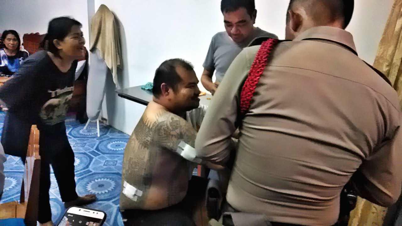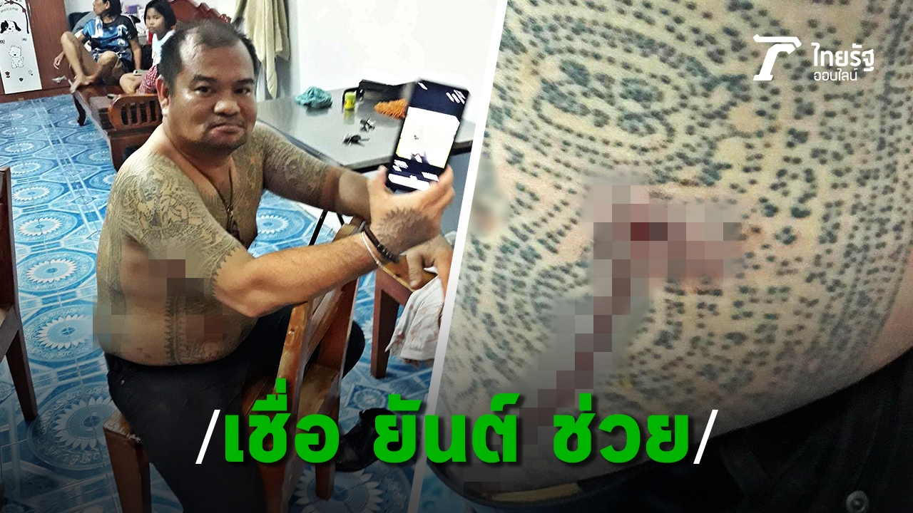 หนุ่มใหญ่ทำงานเป็นเชฟโรงแรมที่พัทยา ขี่จยย.กลับบ้าน ถูกคนร้ายตามยิง กระสุนเจาะร่าง 4 นัด แต่ยังทรงกายอยู่ได้ ยืนยันคนยิงคือแฟนหนุ่มลูกน้อง เชื่อรอดเพราะหลวงพ่อที่ห้อยคอกับยันต์อาจารย์ที่สักไว้รอบตัว