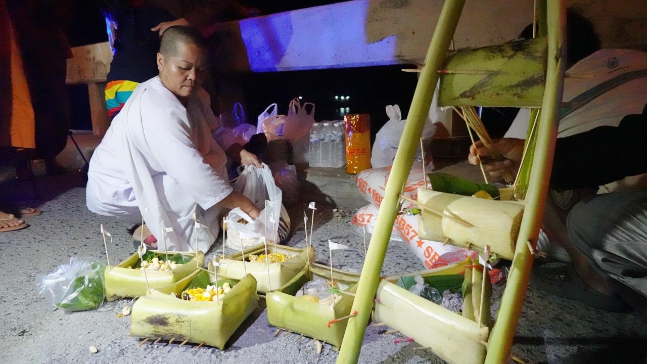 เมื่อเวลา 20.30 น. วันที่ 25 ส.ค.62 ที่กลางสะพานข้ามแม่น้ำบางปะกง ถนนเทพรัตน (บางนา-ตราด) กม.50 ช่องคู่ขนาน ขาเข้า กทม. หมู่ 4 ต.ท่าข้าม อ.บางปะกง จ.ฉะเชิงเทรา ผู้สื่อข่าวได้รับการประสานจากลูกศิษย์ของ "ครูบาเจ้าหน่อเขี้ยวแก้ว" หรือ "พระครูบารวย" วัดป่านฤมิตร (ถ้ำมังกรทอง) จ.นครราชสีมา ให้ช่วยประสานหน่วยกู้ภัยฉะเชิงเทรา และหน่วยกู้ภัยเทศบาลตำบลท่าข้าม เพื่อเปิดสัญญาณไฟบริเวณกลางสะพาน เพื่อทำพิธีถอดวิญญาณสาวชุดแดง และสัมภเวสีที่เสียชีวิตจากอุบัติเหตุ จากการฆ่าตัวตาย จมน้ำ และถูกฆ่าตาย เพื่อให้ไปผุดไปเกิดในภพภูมิต่อไป