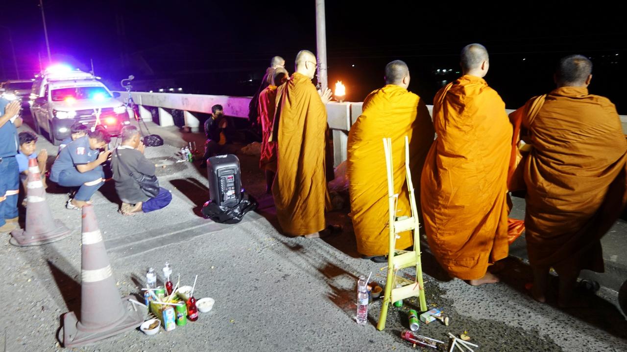 "พระครูบารวย" ทำพิธีถอดวิญญาณ "ผีสาวชุดแดง-สัมภเวสี" ที่สะพานข้ามแม่น้ำบางปะกง ให้ไปสู่ภพภูมิที่ดี หลังคนเจอถี่ ไม่ต้องรอตัวตายตัวแทน ลั่นต่อไปนี้จะไม่มีใครพบเห็น หรือคนมาฆ่าตัวตายอีก