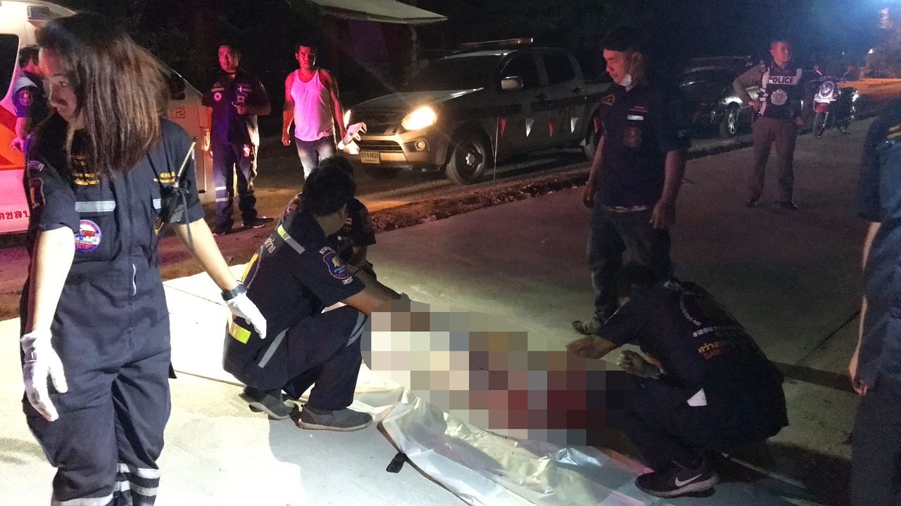 เกิดเหตุชายคลุ้มคลั่งใช้มีดทำครัวเป็นอาวุธไล่ทำร้ายชาวบ้านใน อ.ศรีราชา จ.ชลบุรี ก่อนจะใช้มีดเล่มเดียวกันแทงคอตัวเองจนเสียชีวิต